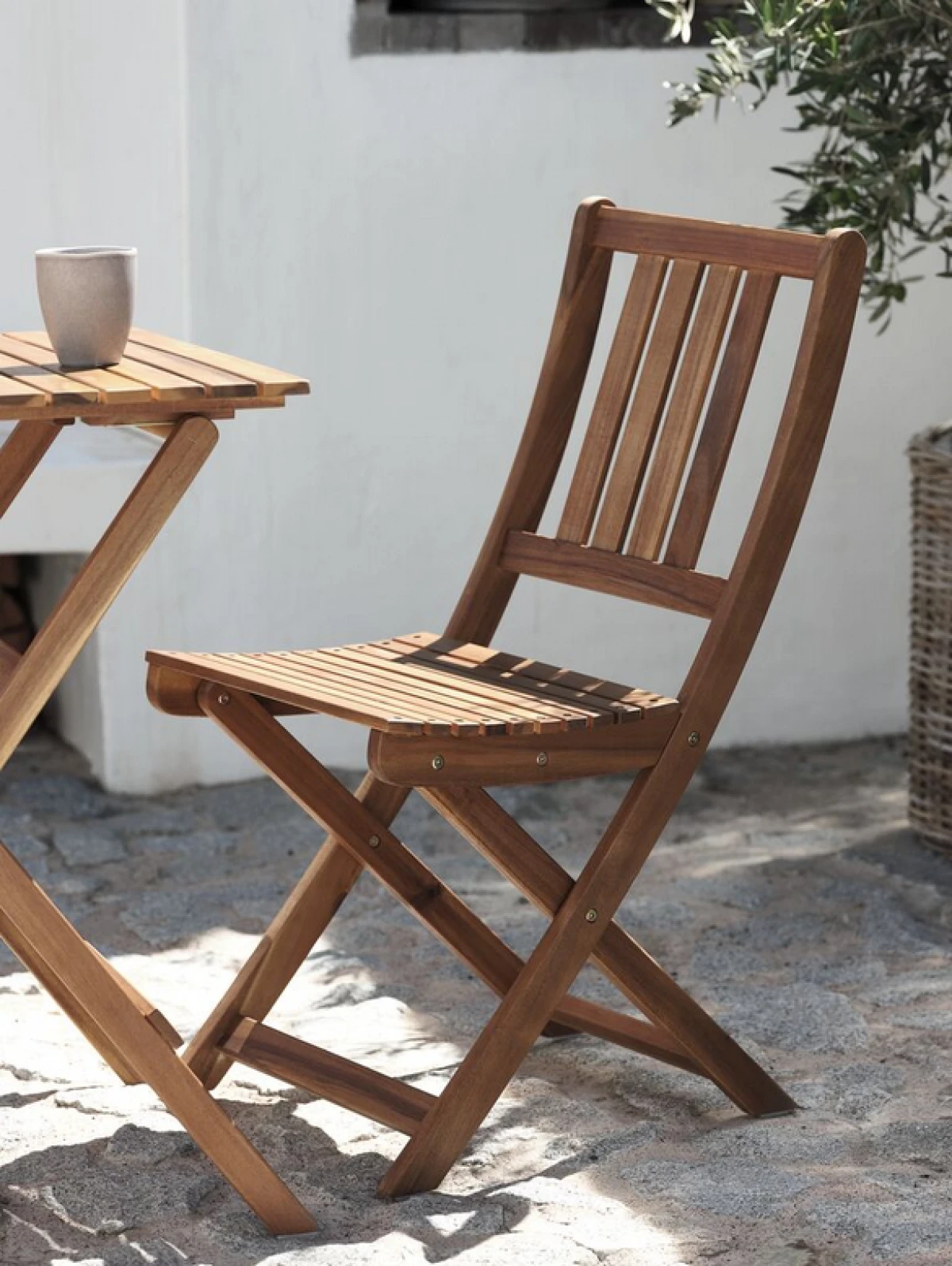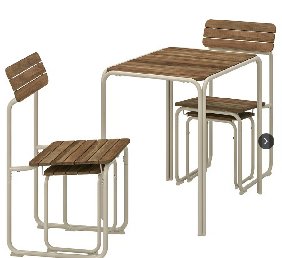 Za manje balkone, birajte sklopive drvene stolice poput RUNEBAKKEN modela. Lako se spremaju, a uz mali stolić i jastučić dobit ćete baš ono što treba za ugodno ispijanje kave.