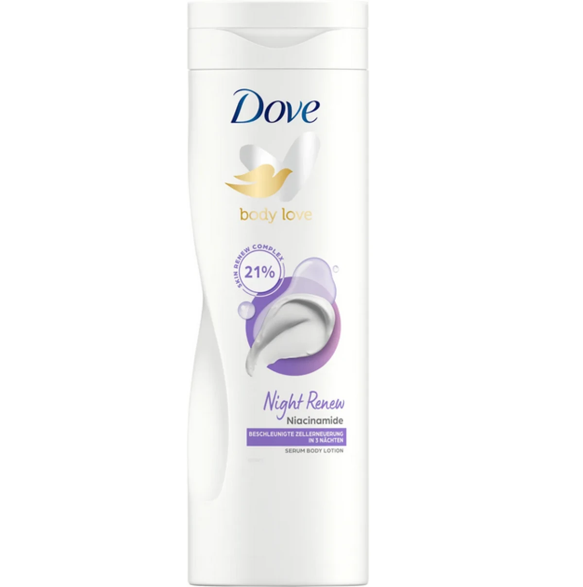 Dove losion za tijelo Night Renew može pridonijeti ubrzanju obnove stanica u samo tri noći. Kvalitetna njega s niacinamidom i opuštajućim mirisom brzo se upija i revitalizira kožu tijekom spavanja. Formula s vitaminom B3 podržava proces obnove kože prodirući duboko u gornji sloj kože.