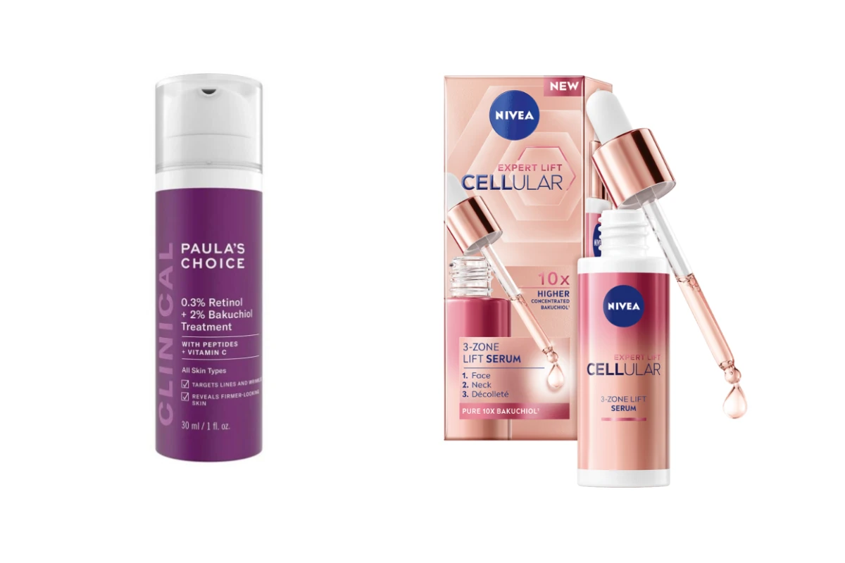 Paula's Choice retinol i bakuchoil tretman - 61 EUR/ Nivea Cellular Expert Lift 3-zonski serum za podizanje kože - 20,85 EUR