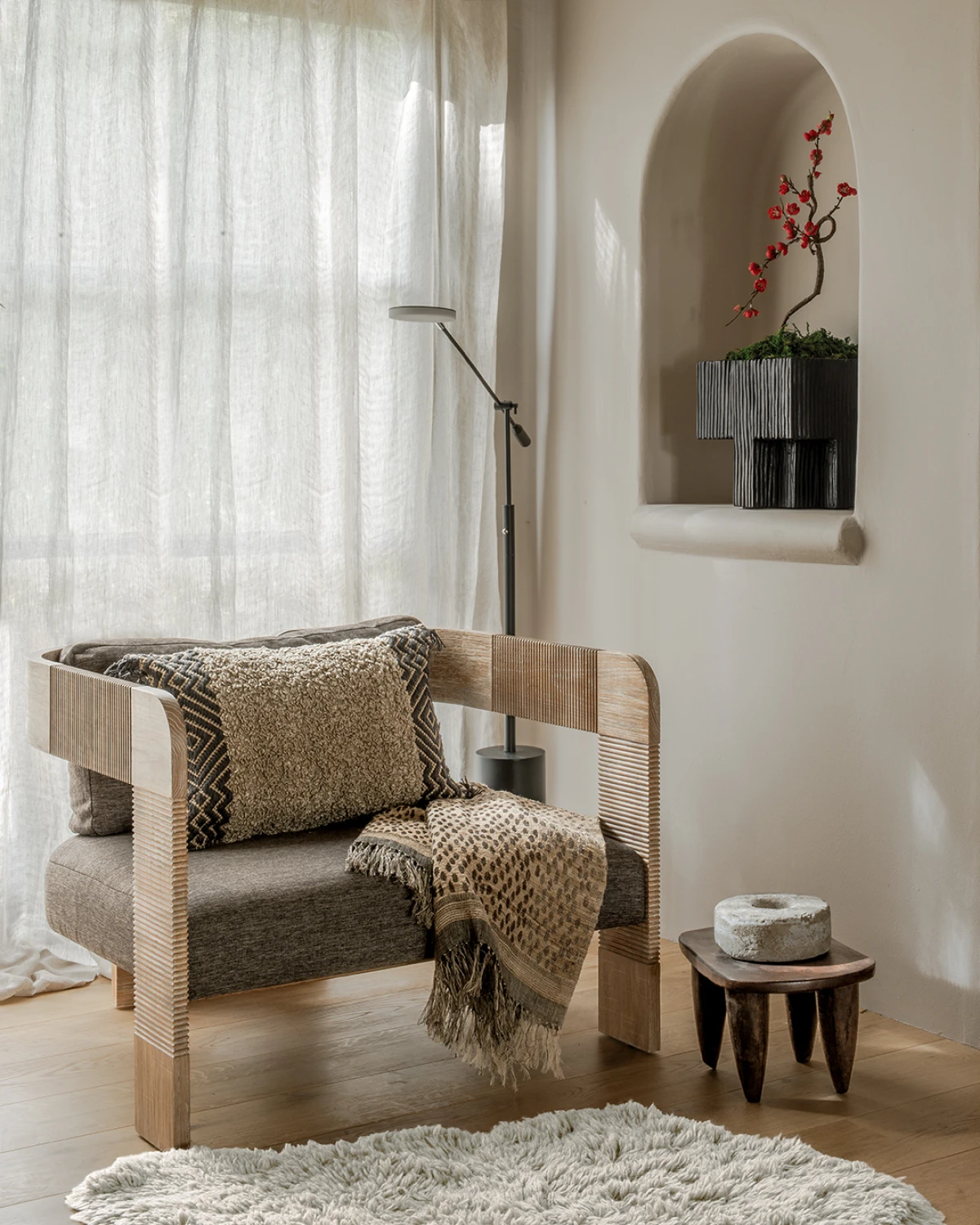Inspiraciju je Stephanie pronašla u neuroestetici - novom području koje istražuje kako prostori utječu na naše emocije i ponašanje. Zakrivljeni oblici, prirodni materijali, prozračni rasporedi i mirisi iz prirode pretvaraju ovu kuću u prostor za sva osjetila.