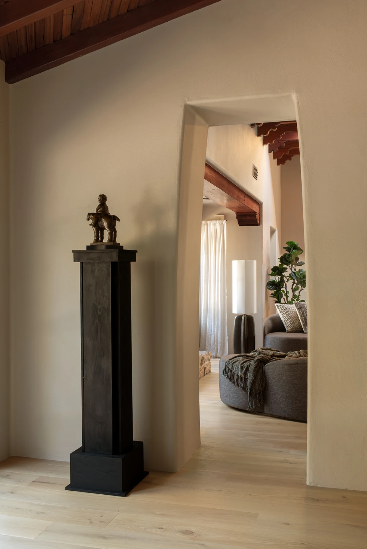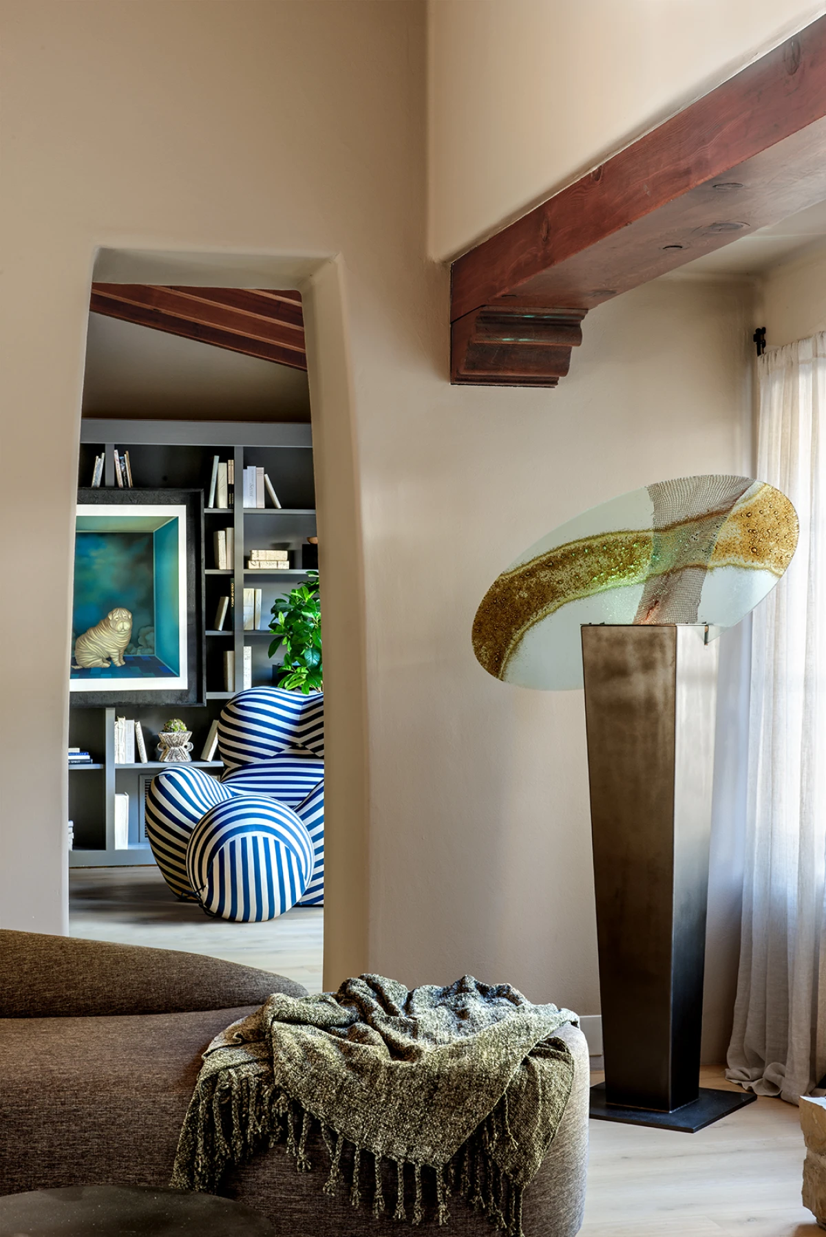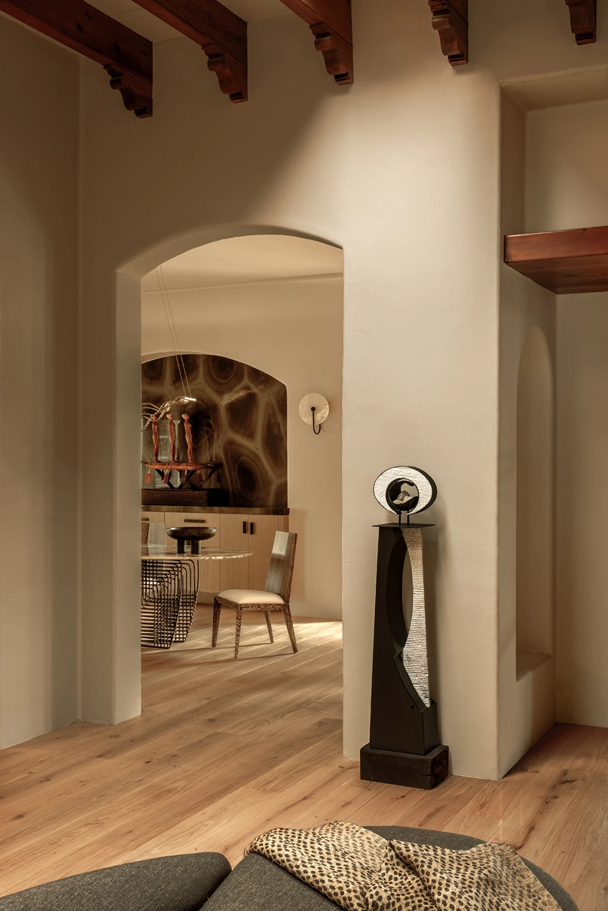 Inspiraciju su dodatno produbili komadi namještaja i tri skulpture koje je Stephanie osobno osmislila i postavila na strateškim mjestima u kući. Organski oblici, prirodni materijali i diskretna prisutnost stvaraju gotovo meditativnu atmosferu. Sve je osmišljeno da potiče osjetila, ali bez nametanja - kuća diše, a njezina umjetnost tiho govori.