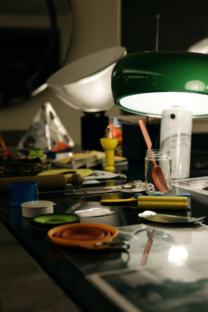 Arco, podna lampa koja rješava problem stropne rasvjete bez bušenja stropa. Taccia, reflektirajuća lampa koja izgleda kao objekt iz galerije. Toio, sastavljena od automobilskog fara i industrijskih elemenata. Parentesi, minimalno rješenje koje redefinira odnos svjetla i prostora. Snoopy, razigran, gotovo pop-art komad koji pokazuje da dizajn može imati karakter.