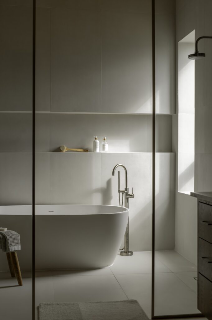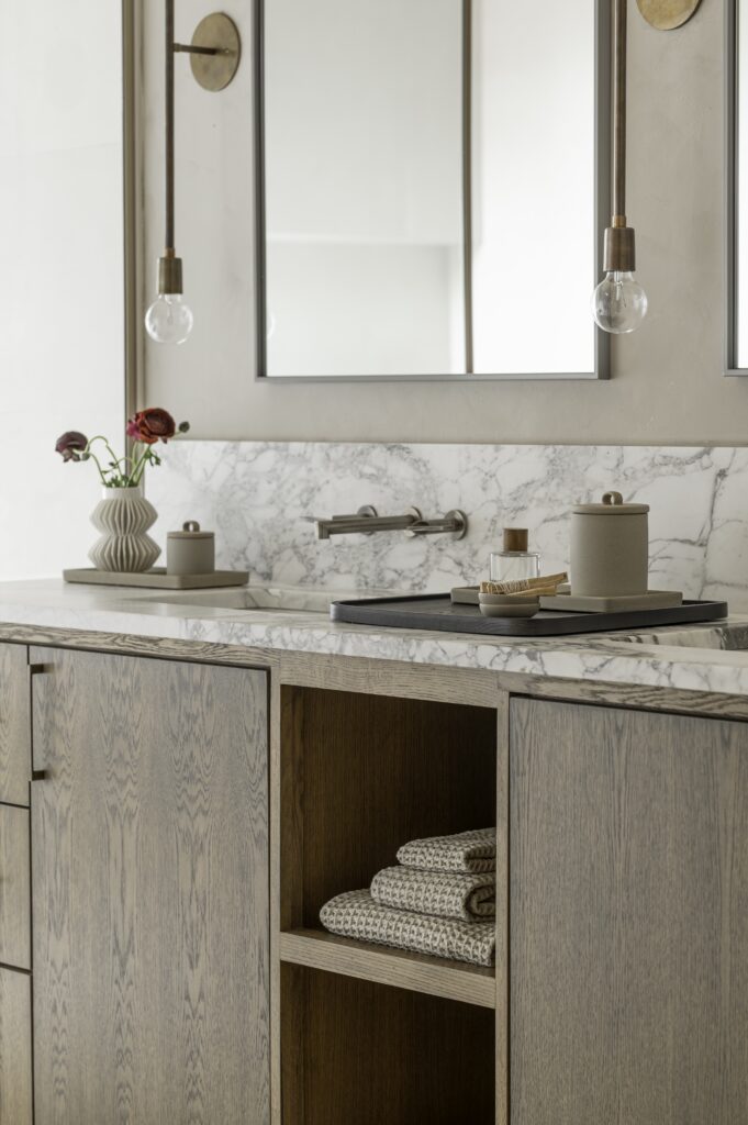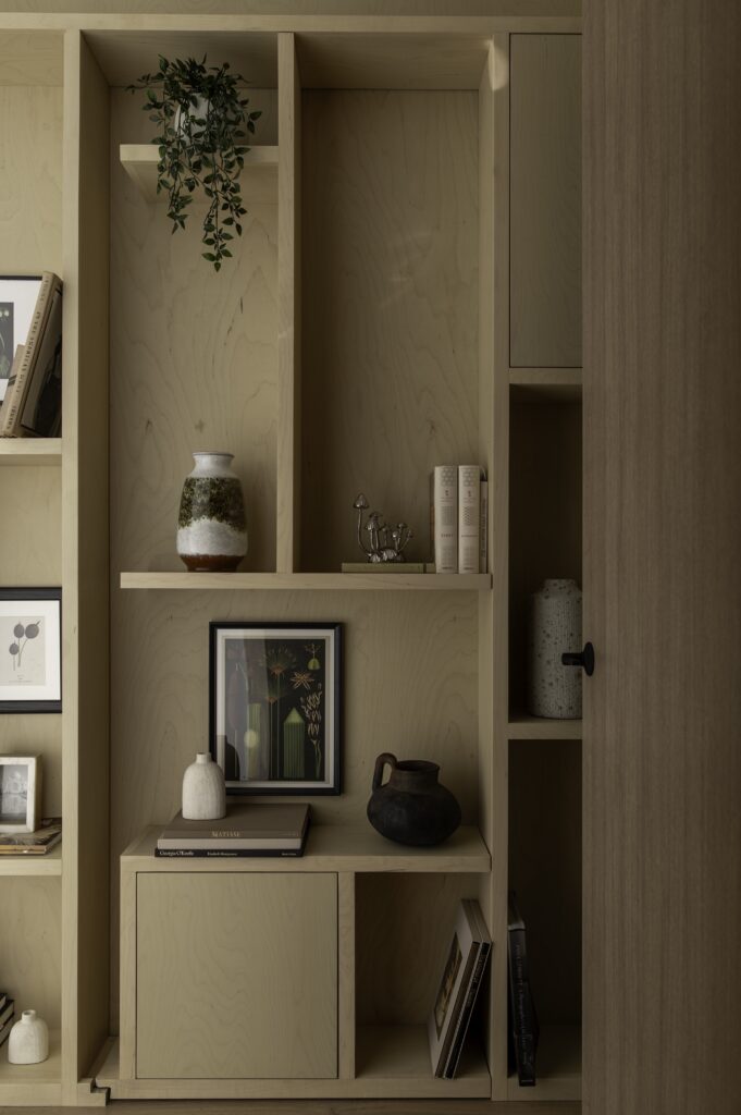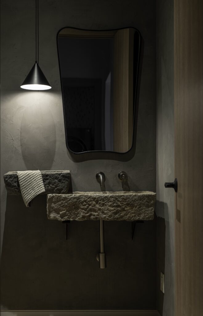 Polazišna točka bila je unaprijed projektirana skladišna konstrukcija koju je trebalo transformirati u funkcionalan, ali i estetski profinjen životni prostor. Upravo tu nastaje najzanimljiviji dio priče – pažljivo osmišljena unutarnja arhitektura omogućila je da se stanovanje, mehanički rad i izlaganje automobila odvijaju pod istim krovom, bez kompromisa. Mramorne površine, ormarići od bijelog hrasta, zidovi obrađeni tehnikom Roman Clay i stropovi od prirodne šperploče ublažavaju industrijski karakter prostora i stvaraju ravnotežu između sirovosti i elegancije.