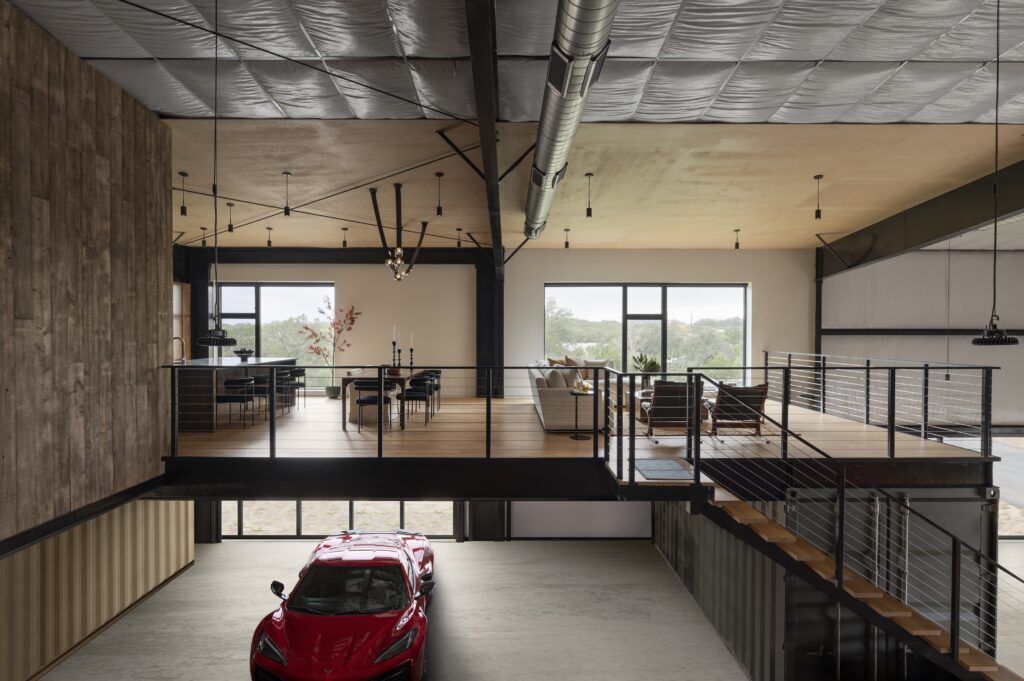 U njemu su trkaći automobili izloženi poput umjetničkih djela. Ovdje oni nisu samo funkcionalni objekti, već postaju dio vizualnog identiteta prostora. Dodatnu dozu karaktera donose i prenamijenjeni brodski kontejneri, u kojima su smještene dvije kupaonice i atraktivan bar s otokom obloženim bakrom što je detaljem koji unosi toplinu i kontrast u industrijski ambijent.
