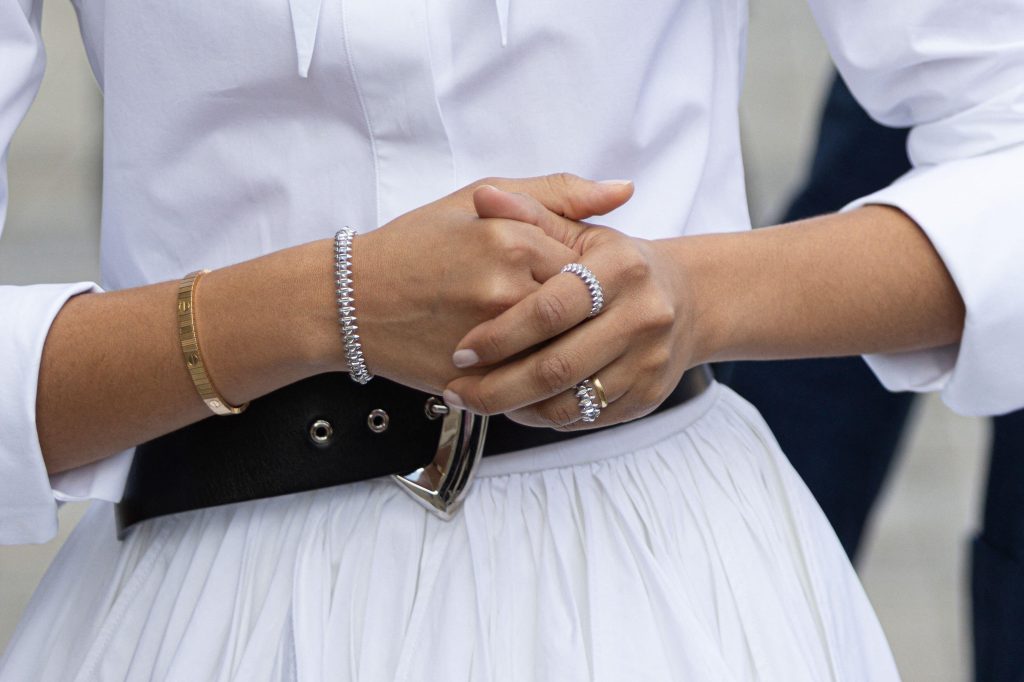Zendaya je nosila strukturiranu bijelu košulja-haljinu s remenom u struku i voluminoznim donjim dijelom. na prvi pogled minimalistički, ali vrlo efektan komad koji savršeno odražava estetiku Louis Vuittona. Ipak, ono o čemu se najviše pričalo nisu bile samo njezina modna kombinacija i frizura, već i prstenje na njezinoj lijevoj ruci. Naime, uz zaručnički prsten nosila je i delikatnu zlatnu burmu, što je ponovno pokrenulo glasine da su se ona i glumac Tom Holland možda već potajno vjenčali.