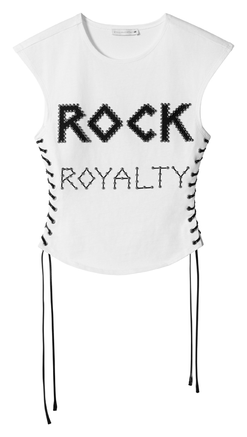 U ponudi su i blistavi party komadi, odvojivi komadi i traper, kao i mrežaste haljine i topovi s upečatljivim arhivskim cherry printom. Dodatnu dozu nostalgije donosi bijela mini majica ukrašena zakovicama s natpisom „Rock Royalty“.