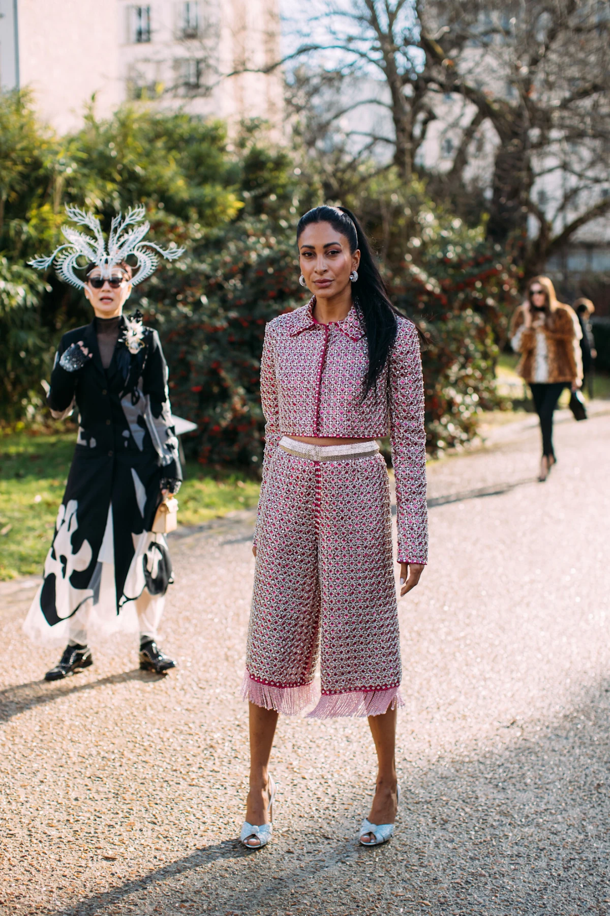Za večernje druženje na otvorenom, odaberite capri hlače u sjajnom materijalu poput satena. Kombinirajte ih s crop topom, platformama i upečatljivim nakitom.