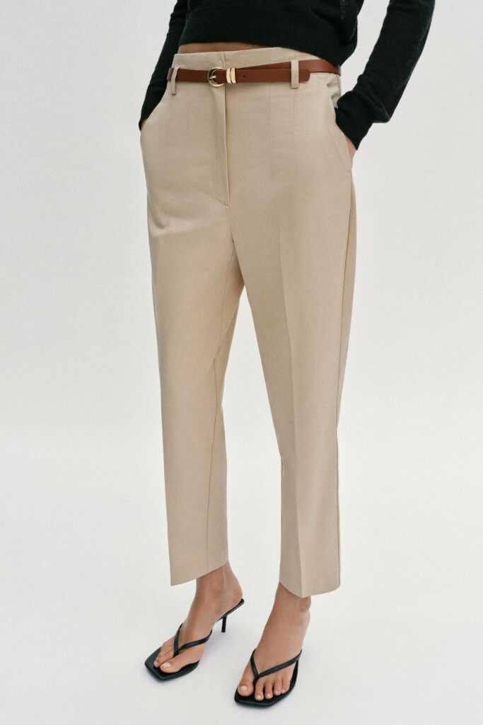 Poslovne hlače ključ su svake dobre proljetne garderobe, a Zara zna kako iste napraviti, skrojiti i onda im još sniziti cijenu. Zara sniženje ponudi ima nekoliko boja jednakog kroja poslovnih hlača, koji laska svima i vrlo ga je lako kombinirati. Riječ je o hlačama koje su rezane iznad gležnja te imaju srednju visinu struka. Ono što je još posebno na njima jest da dolaze s remenom, koji se naravno može skinuti, ali nama izgledaju veoma dobro s njim. Hlače dolaze u bež, tamno plavoj, ružičastoj i još nekoliko boja. Trenutačna cijena im iznosi 15,99 eura, dok su prvotno koštale 27,95 eura.
