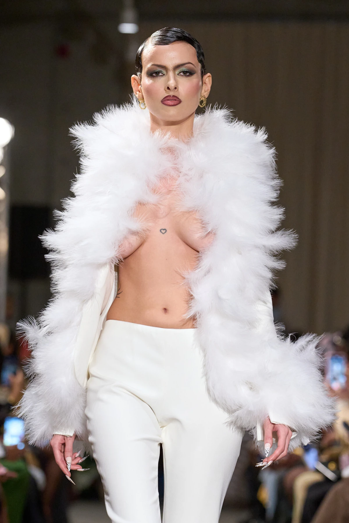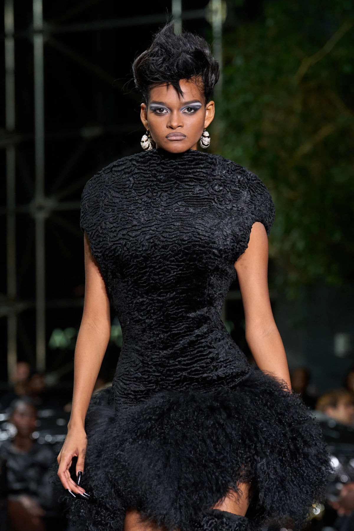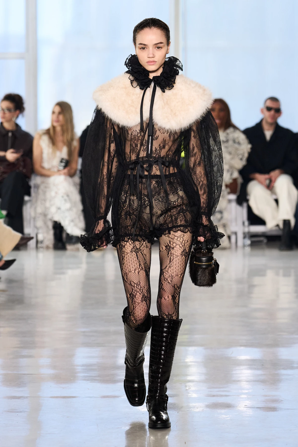 Dok se muška moda okreće Nosferatu estetici, ženska ide u smjeru mračne elegancije. Najbolji primjeri su krzneni detalji, kape i cipele viđene kod Aknvasa, Brandona Maxwella, Anne Sui i Khaite. Jedno je sigurno – vraćamo se vampirskom šarmu! Dizajnerica Meruert Tolegen ponudila je kolekciju crno-bijelih komada koji balansiraju strukturu i fluidnost, Collina Strada predstavila je fantastične vjenčanice i lookove inspirirane bogatim udovicama, dok je Alice + Olivia igrala na kartu crne čipke koja pleše na granici gotike i romantike.