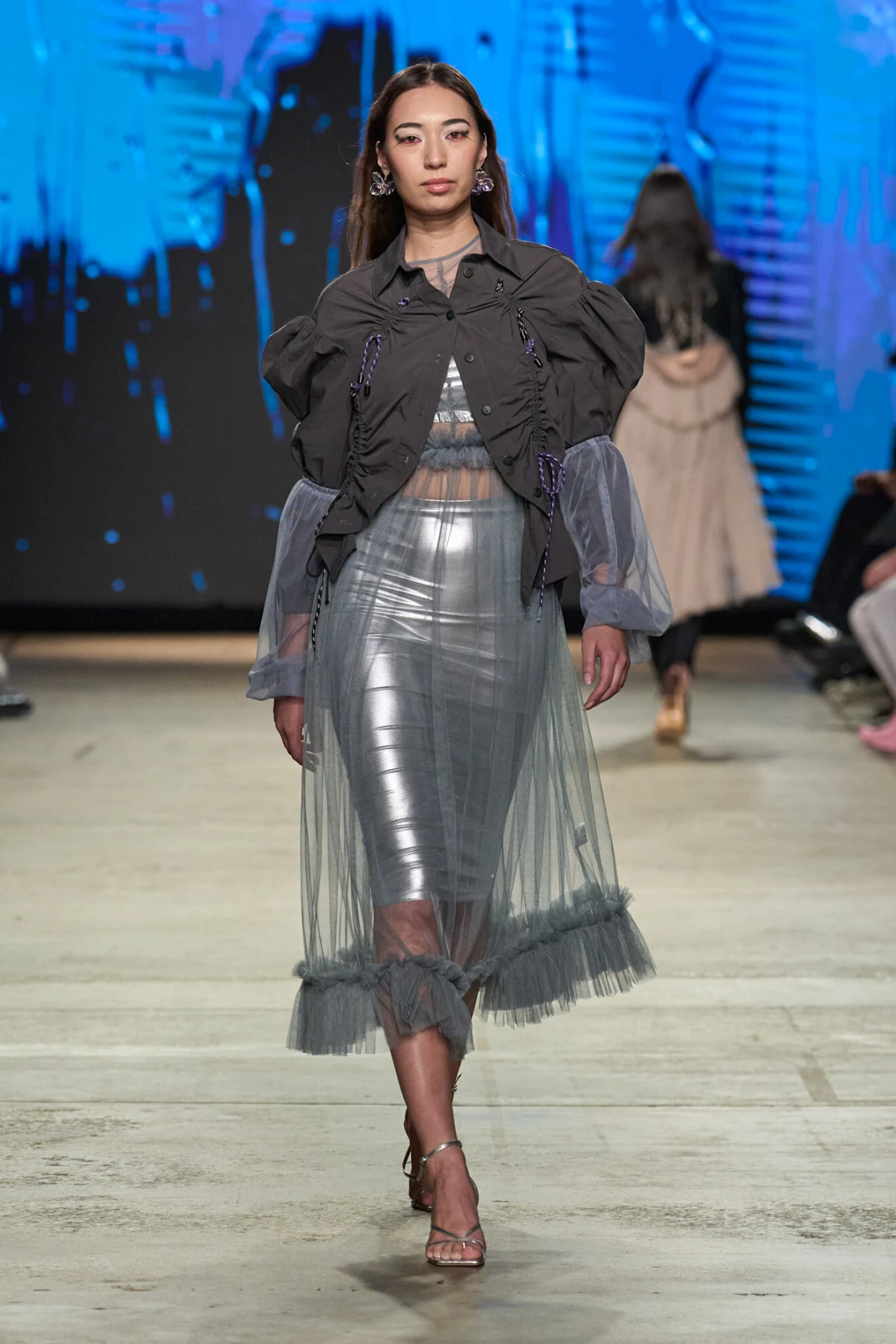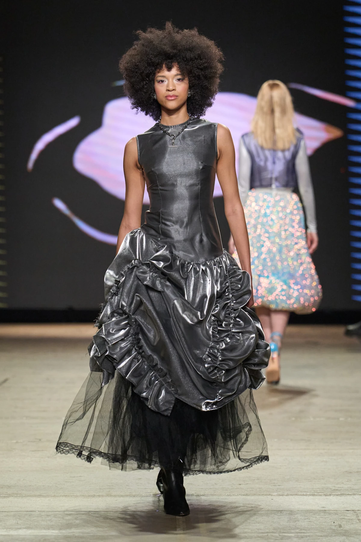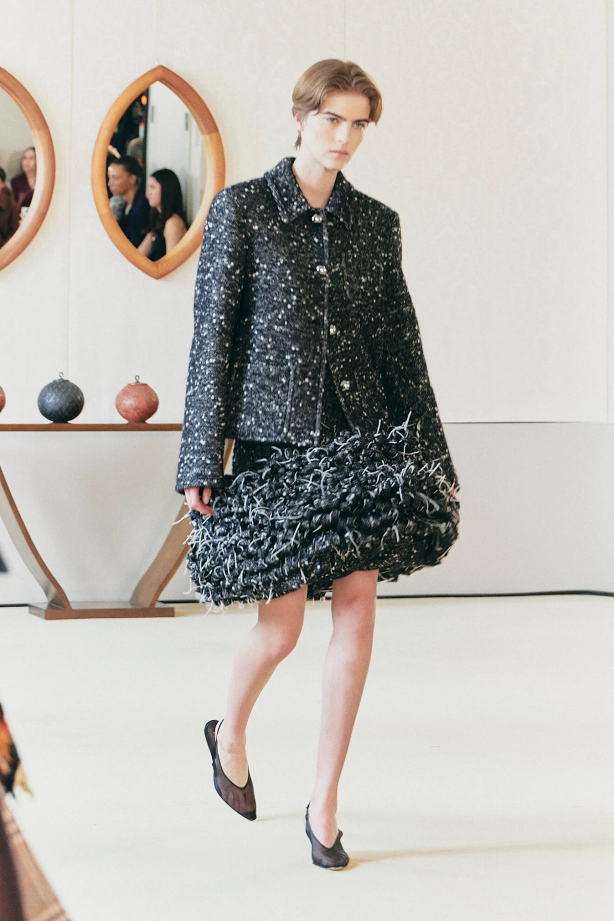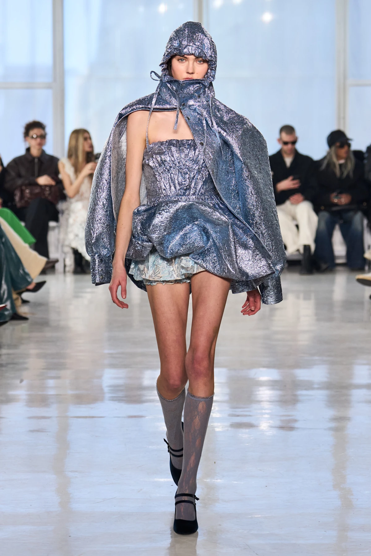 U istom duhu kao i perje, jesen 2025. obilježit će blještave maksimalističke kreacije. Iako zlato i dalje drži svoju poziciju na modnoj sceni, ove sezone srebro preuzima glavnu ulogu. Carolina Herrera prihvatila je ovaj trend s blistavim haljinama čiji su se kristali reflektirali u nježnim, prozirnim nijansama. Thom Brown također se igrao s kontrastima, kombinirajući duboki crni baršun sa srebrnim dodacima. Alex S. Yu, s druge strane, odlučila se za hrabar korak i cijelu svoju kolekciju obukla je u metalik srebrne tkanine.
