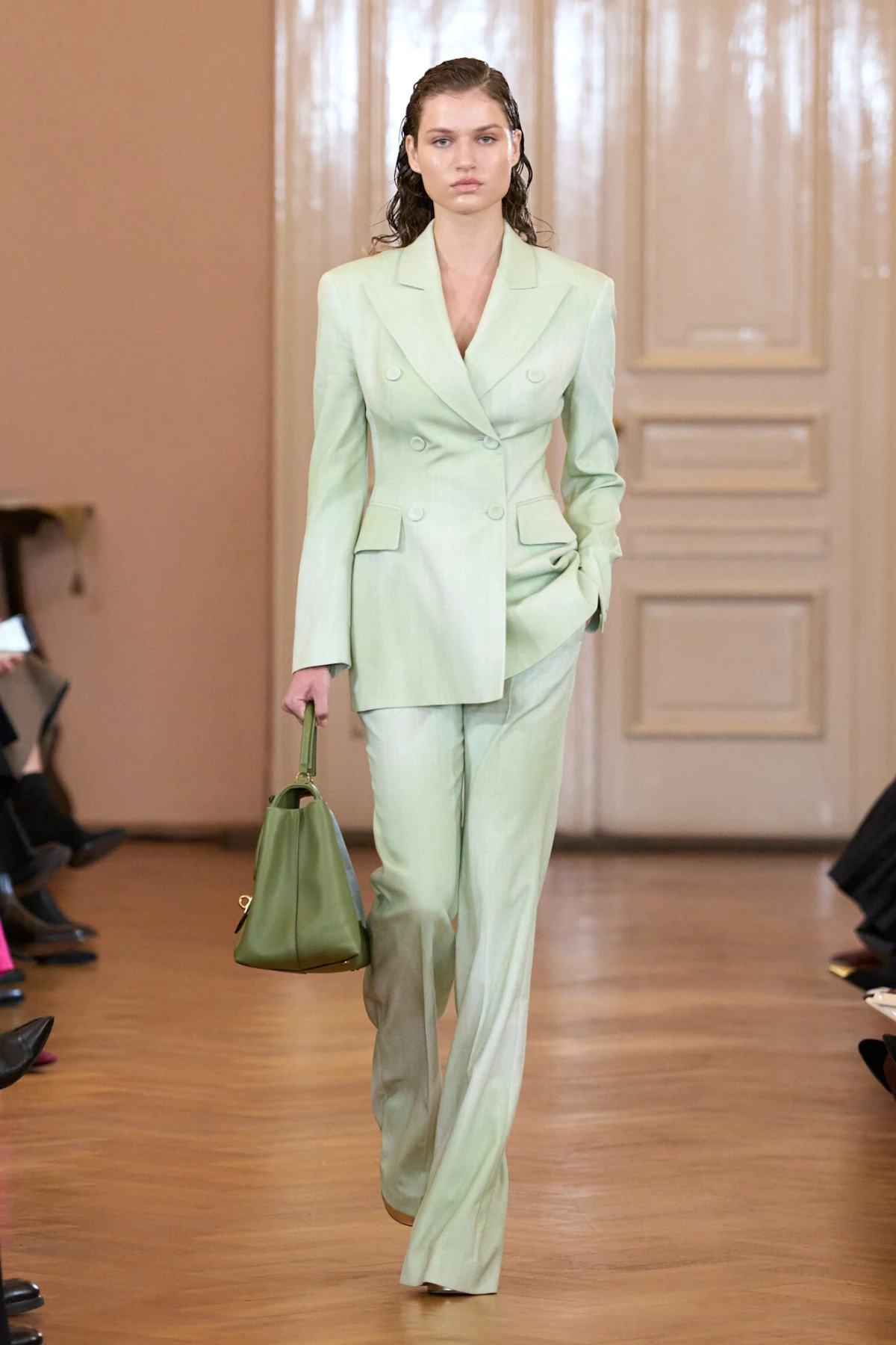 Duboka, luksuzna nijansa zelene dominirat će proljećem 2025. Ovu boju viđali smo u Gucci i Saint Laurent kolekcijama, najčešće kroz satenske haljine, široke hlače i upečatljive sakoe.