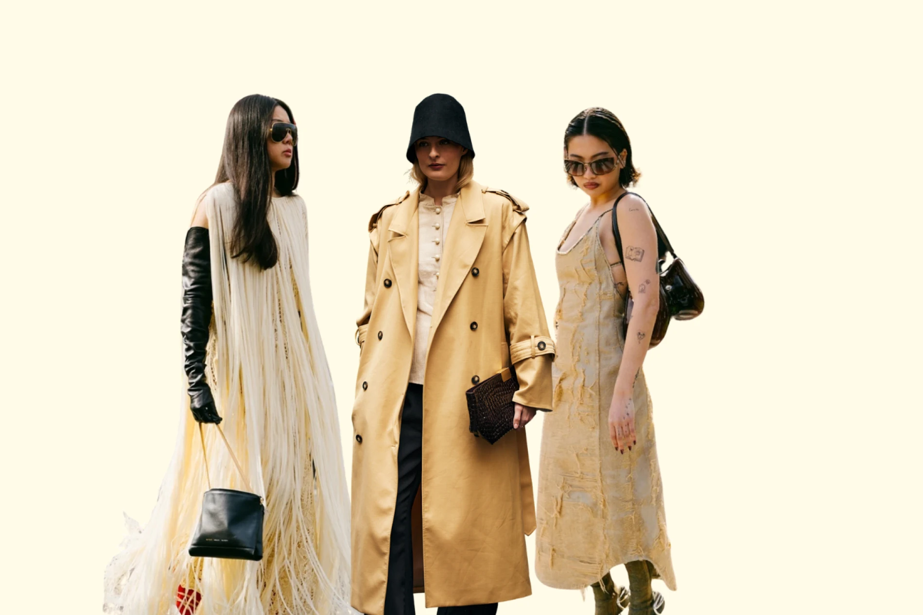 Jakne, od dugih i oštrih krojeva do kratkih i resastih, donose ovu toplu nijansu na ulice. Bilo da se radi o monokromatskom looku od glave do pete ili o laganom, pastelnom naglasku poput strukturiranog prsluka stiliziranog s klasičnim cipelama s niskom potpeticom, butter yellow boja s lakoćom donosi osjećaj svjetline.