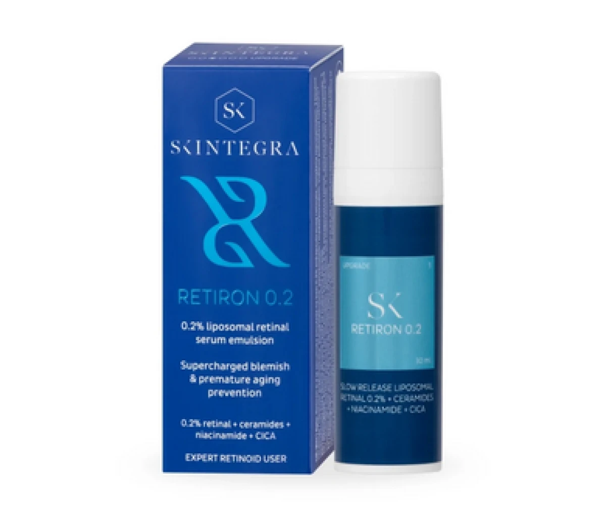 SKINTEGRA Retiron 0.2 je intenzivni dermokozmetički tretman s 0.2 % liposomalno enkapsuliranog retinala, namijenjen naprednim korisnicima koji ciljano žele ublažiti bore, hiperpigmentacije i neujednačen ton kože. Zahvaljujući liposomalnom sustavu isporuke, Retiron 0.2 predstavlja jedinstven proizvod na tržištu.