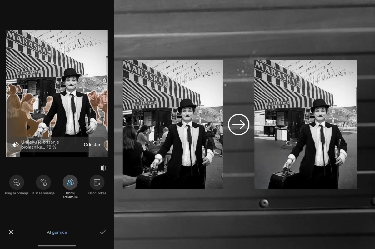 Kao što to obično biva na svim eventima, i ovaj festival bio je prepun ljudi, što je dodatno otežavalo fotkanje prave atmosfere. Puno prolaznika uletavalo je u kadar, skrivajući detalje i narušavajući savršenu kompoziciju. E sad, kako ih izbrisati? AI Eraser već je neko vrijeme pravi spas za ovakve situacije – i sama Lara ga voli. Ipak, smatra da nije uvijek dovoljno precizan i da ponekad ostavi tragove ili izbriše previše. HONOR je zato otišao korak dalje i uveo funkciju Erase passers-by – pametni alat koji samostalno detektira prolaznike, briše ih iz kadra i automatski nadograđuje pozadinu. Rezultat? Čiste, profesionalne fotografije bez ometajućih elemenata, baš kao da ste bili sami na lokaciji.
