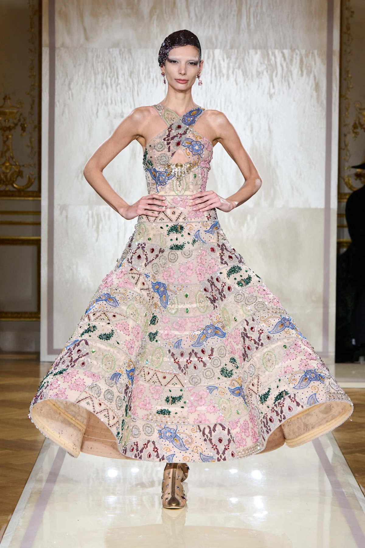 Orijentalne, no s ukusom odrađene simbole, asimetrične haljine s valovima šarenih kristala, precizno obojenu i nevidljivu souffle tkaninu koja bi posramila i Balenciaga haljinu Nicole Kidman na Zlatnim globusima.