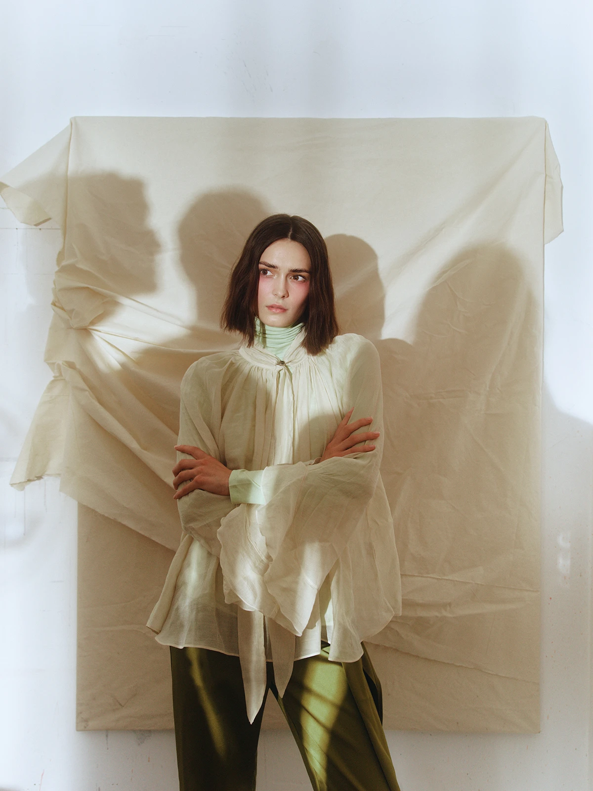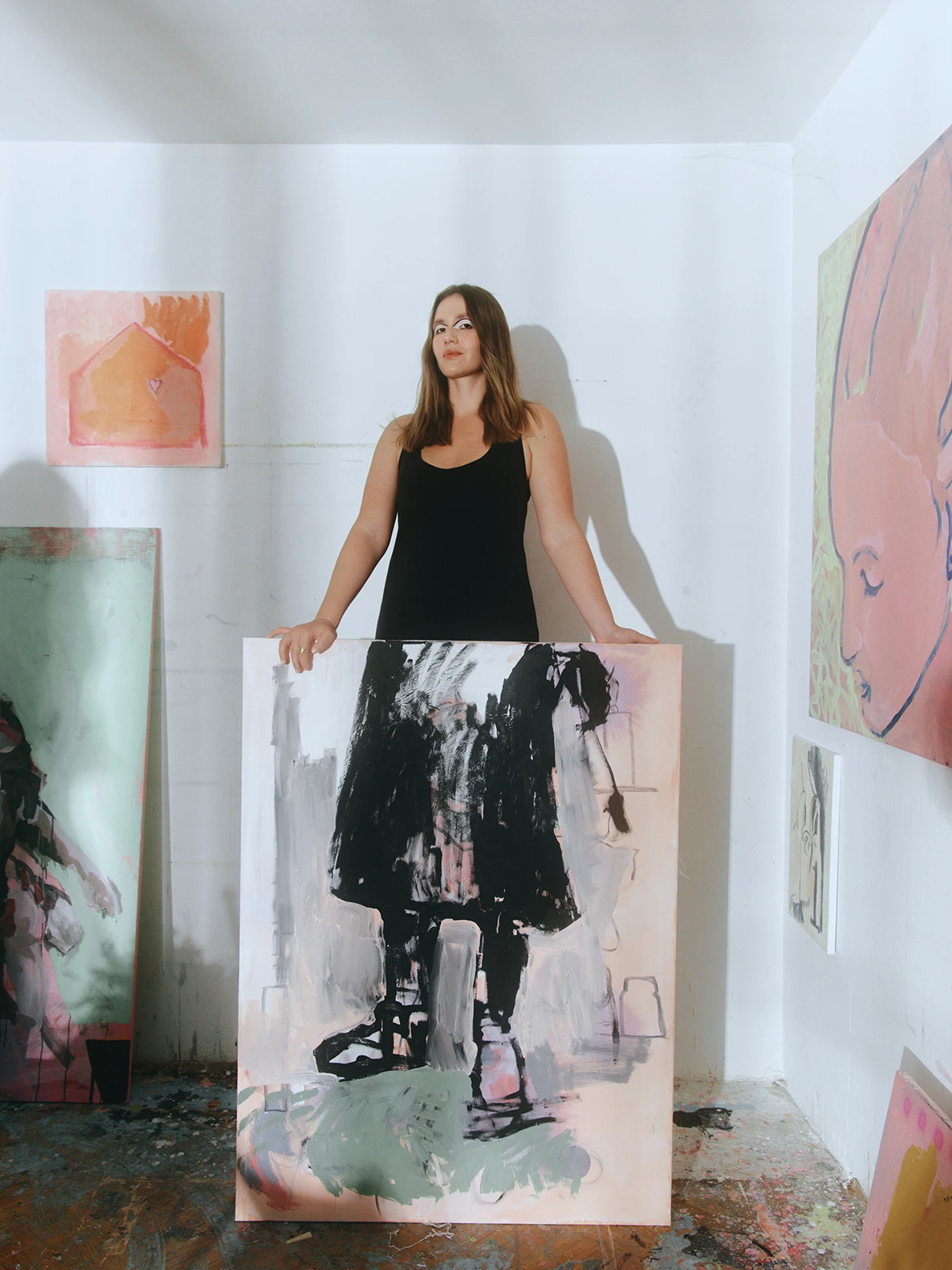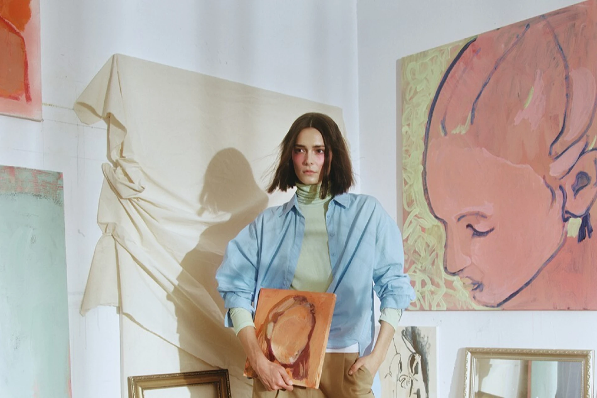 ledam Hanu Hanak, mladu umjetnicu koju sam prvo upoznala kao mladu mamu, da bih potom spoznala da je akademska slikarica čiji motivi i radovi tako direktno govore mojoj duši da mi je gotovo nevjerojatan generacijski jaz (u broju godina) koji nas dijeli, kako zabija čavlić u zid. Mnogo toga uobičajenog za slikarski atelje napravila je Hana mahinalno tijekom našeg snimanja (uklanjanje akrila, namještanje platna), ali ovaj trenutak mi, iz nekog nepoznatog razloga, potpuno odvuče pažnju. Kako nešto tako automatizirano postaje tako važno?