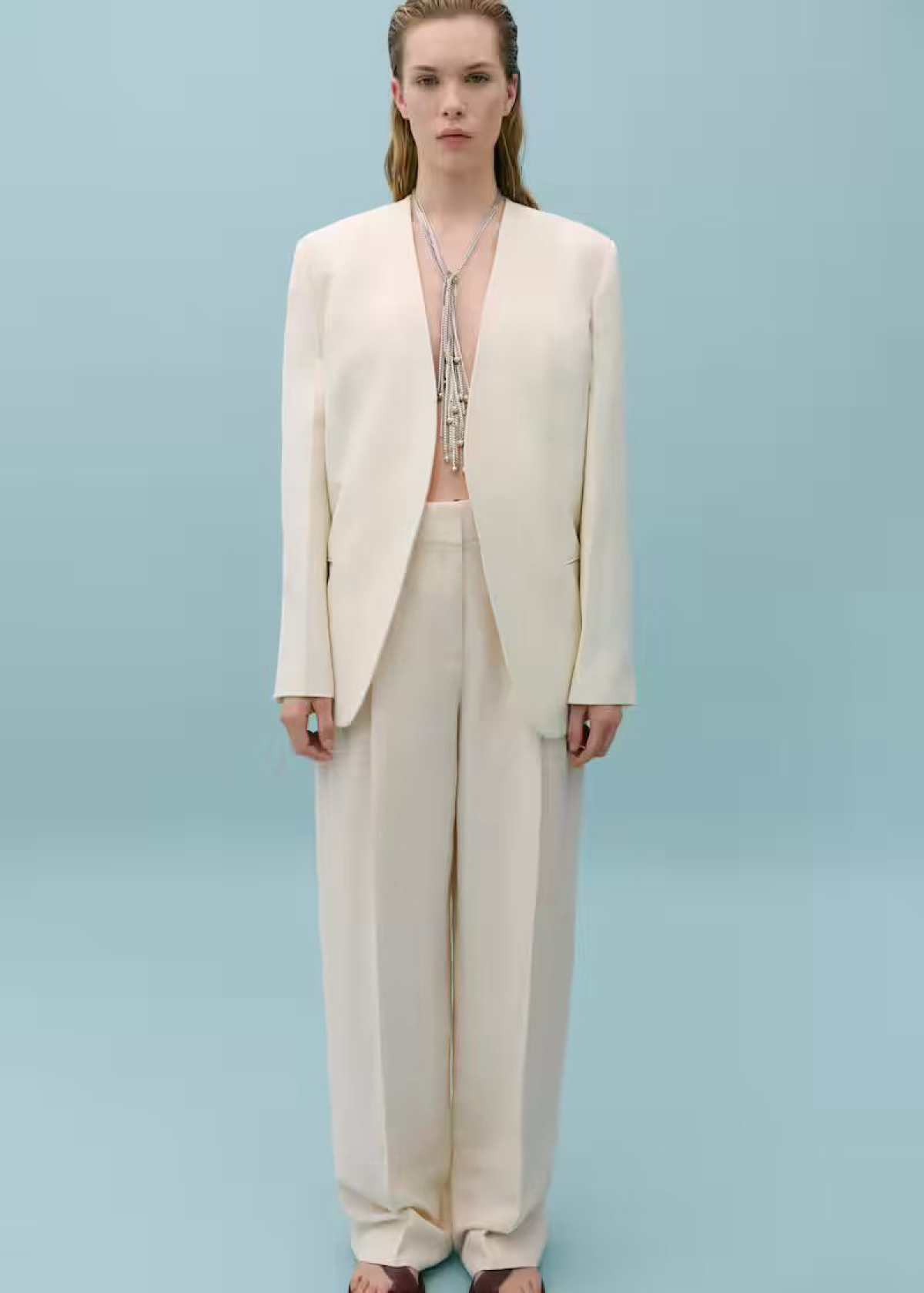Raspon boja je očekivano ograničen na neutralne tonove, ali tu i tamo možemo naići na svilenkastu slip haljinu ili košulju u pastelno plavoj ili rozoj boji. Uski bodiji s V izrezom daju dozu seksepila u kombinaciji sa širokim hlačama visokog struka koje savršeno padaju na peep toe sandale, a heklane haljine i suknje idealan su ljetni dodatak, kako za beach club na plaži, tako i za elegantniju i svečaniju večeru u kombinaciji s predimenzioniranim blejzerom.