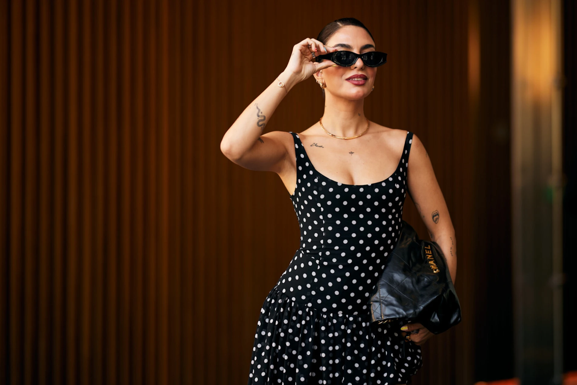 Kad smo kod bazičnih topova – bez njih ne idem na ljetovanje, kao ni bez ravnih sandala, najčešće u smeđoj boji. Uz torbu za plažu, koja mi često služi i kao torba za put, volim ponijeti i jednu manju torbicu koju nosim i danju i navečer. Velika sam obožavateljica novčanika koji se mogu nositi kao torbica – imam jedan brenda Saint Laurent koji nosim u izlazak (rijetko se događa), ali i kad idem na večeru u neki dobar restoran.