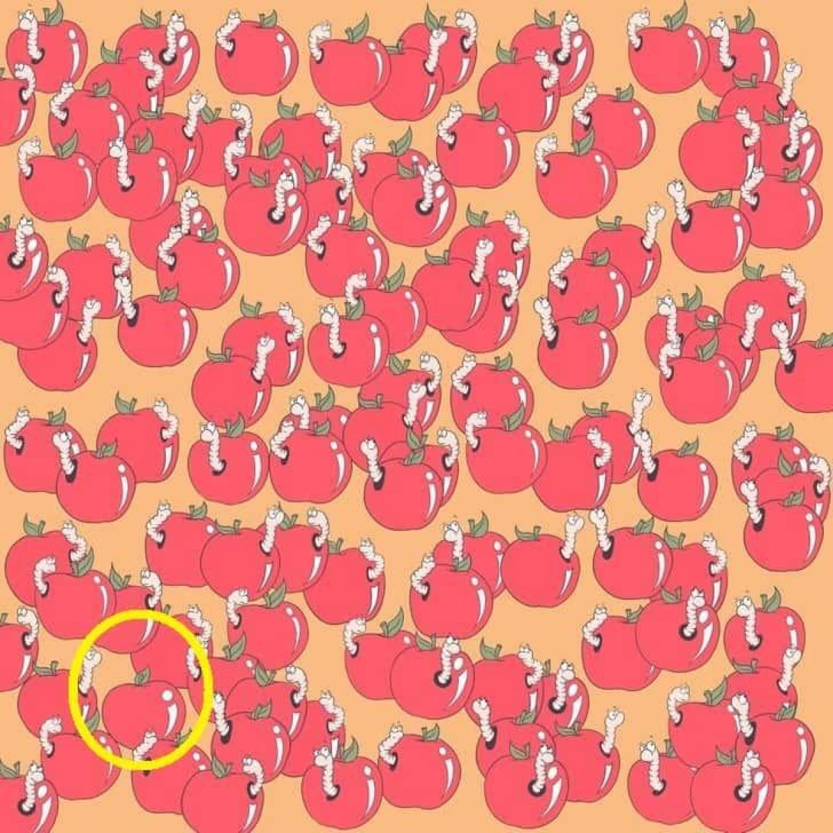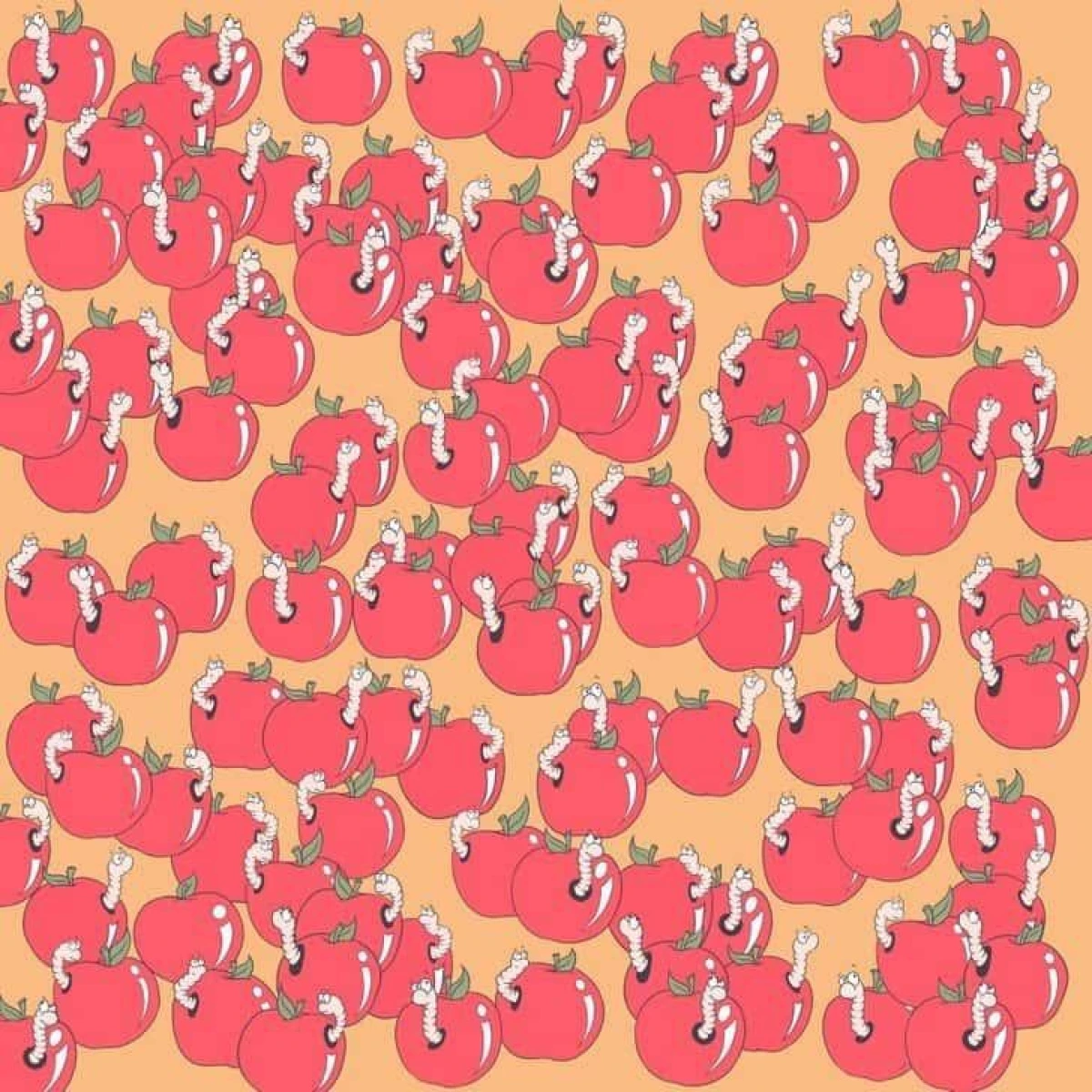 Na ilustraciji se nalazi mnoštvo jabuka, a svaka od njih ima crve. No, među njima je skrivena jedna savršena jabuka. Vaš zadatak je pronaći je, ali budite brzi – imate samo 7 sekundi!
