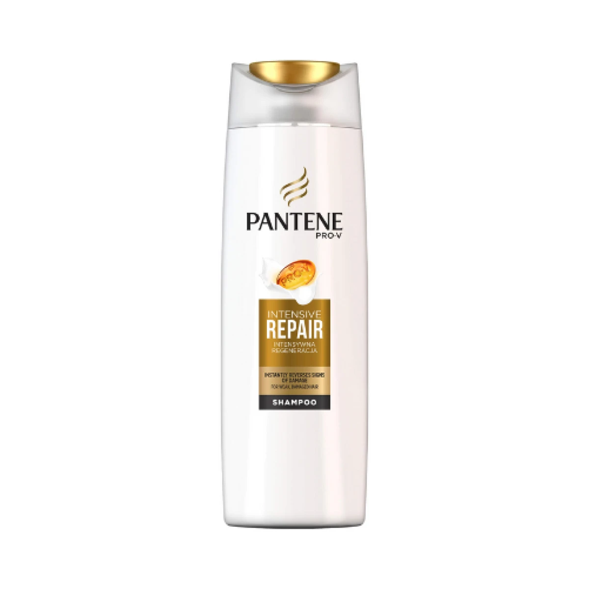 Pantene Pro-V formula, šampon za kosu Intensive Repair. Njegova bogata obnavljajuća formula obogaćena njegujućim mikro-sastojcima. Pomaže zaštititi slabu i oštećenu kosu od oštećenja uzrokovanih oblikovanjem, donoseći joj pritom zdrav izgled i sjaj.