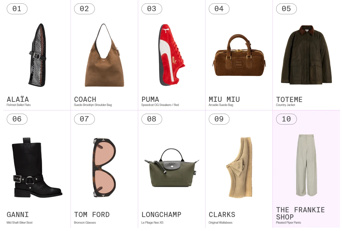Izbor obuće pokazao je snagu nostalgije i pojednostavljenog dizajna, pa su se tako Puma Speedcat tenisice isprofilirale su se kao najtraženije tenisice sezone. Ovaj retro model viđen je na slavnim osobama poput Due Lipe i Troye Sivana, što im je zabilježilo porast pretraga od 532% samo u kolovozu. Ganni motociklističke čizme i legendarne Clarks Wallabee cipele, također su potvrdile svoje mjesto kao must have jesenske i zimske sezone. Barn jakne i dalje su jedan od najpopularnijih komada, pa nas ne iznenađuje što je Toteme Country jakna zauzela visoko peto mjesto, kao i elegantne The Frankie Shop hlače s crnom koje su zauzele deseto mjesto.