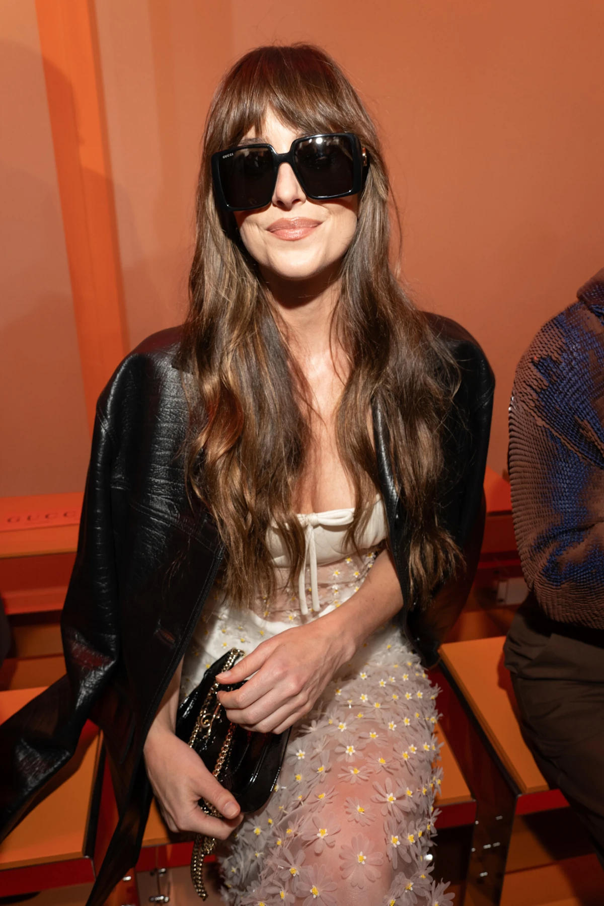 Dakota Johnson, vječna Gucci it djevojka još od vremena Alessandra Michelea, nas je oduševila odličnom kombinacijom duge bijele haljine i teške kožne jakne.