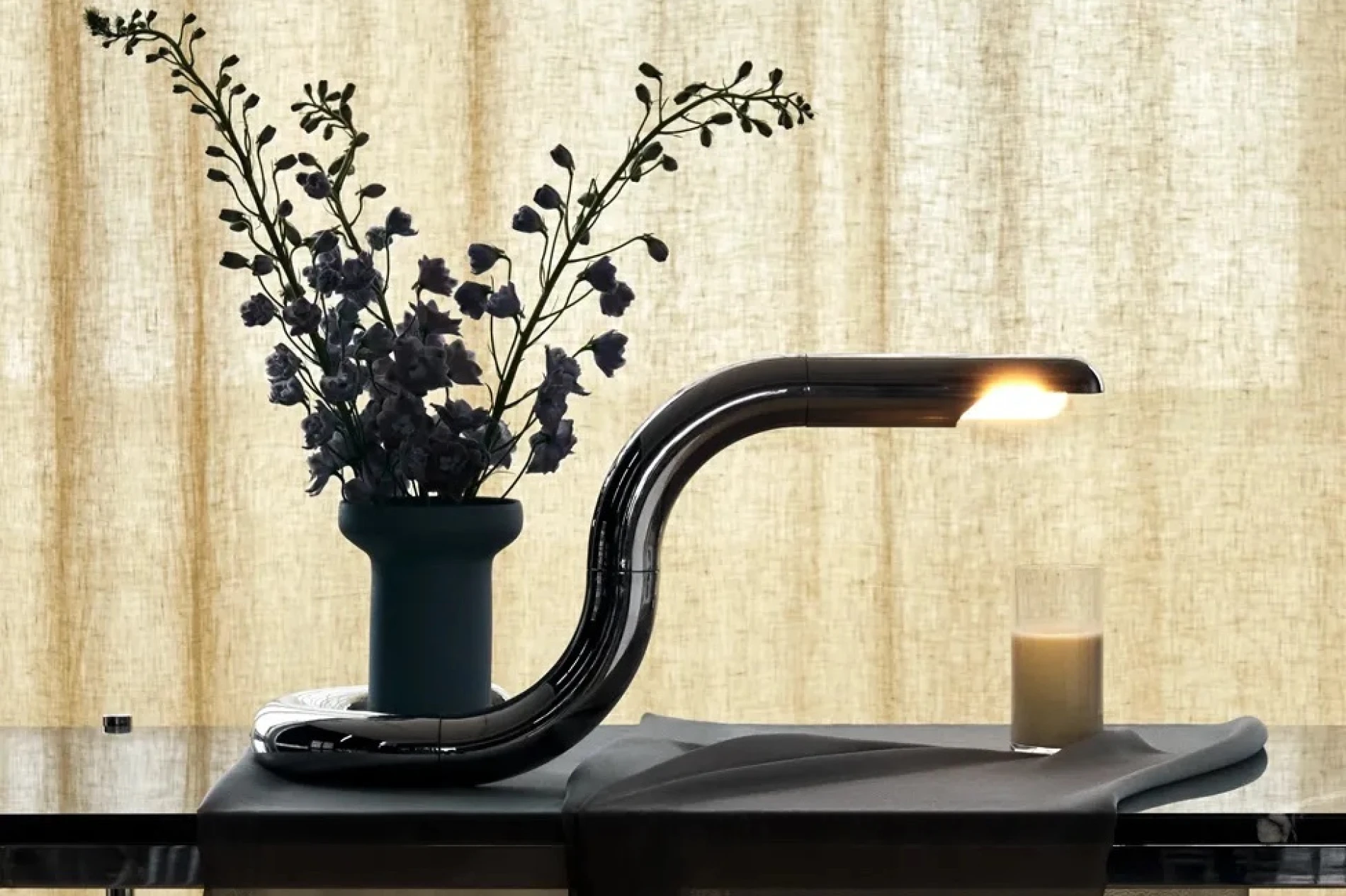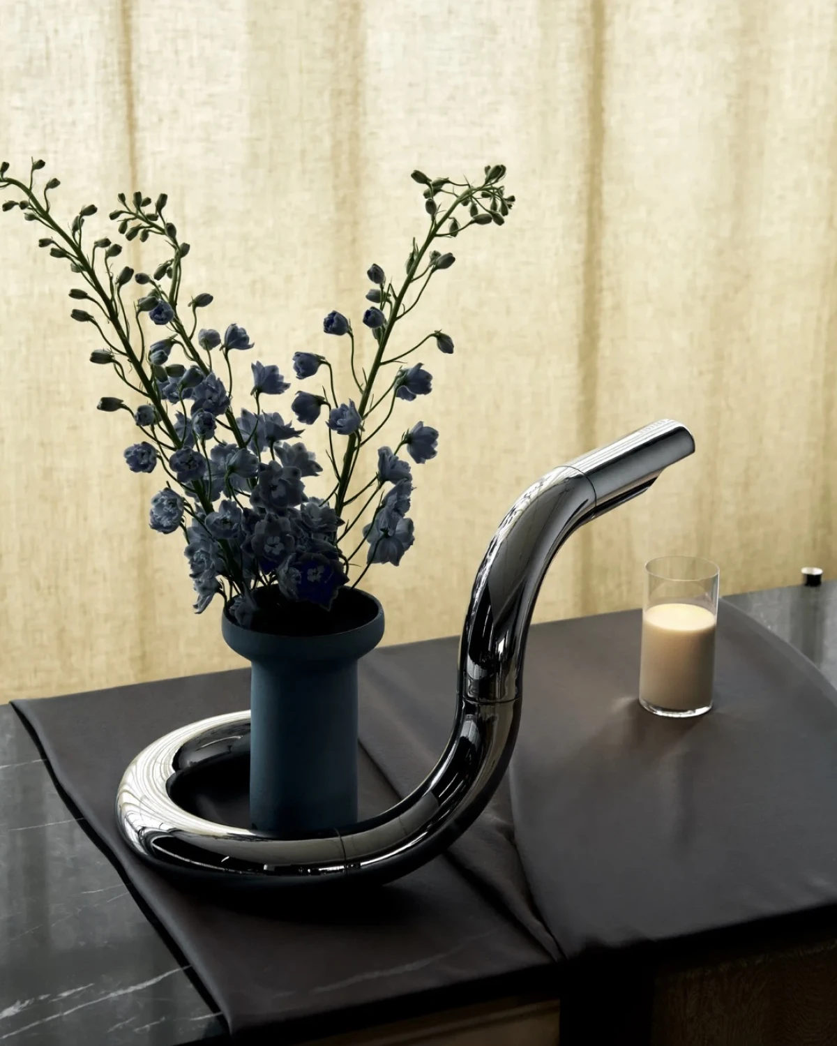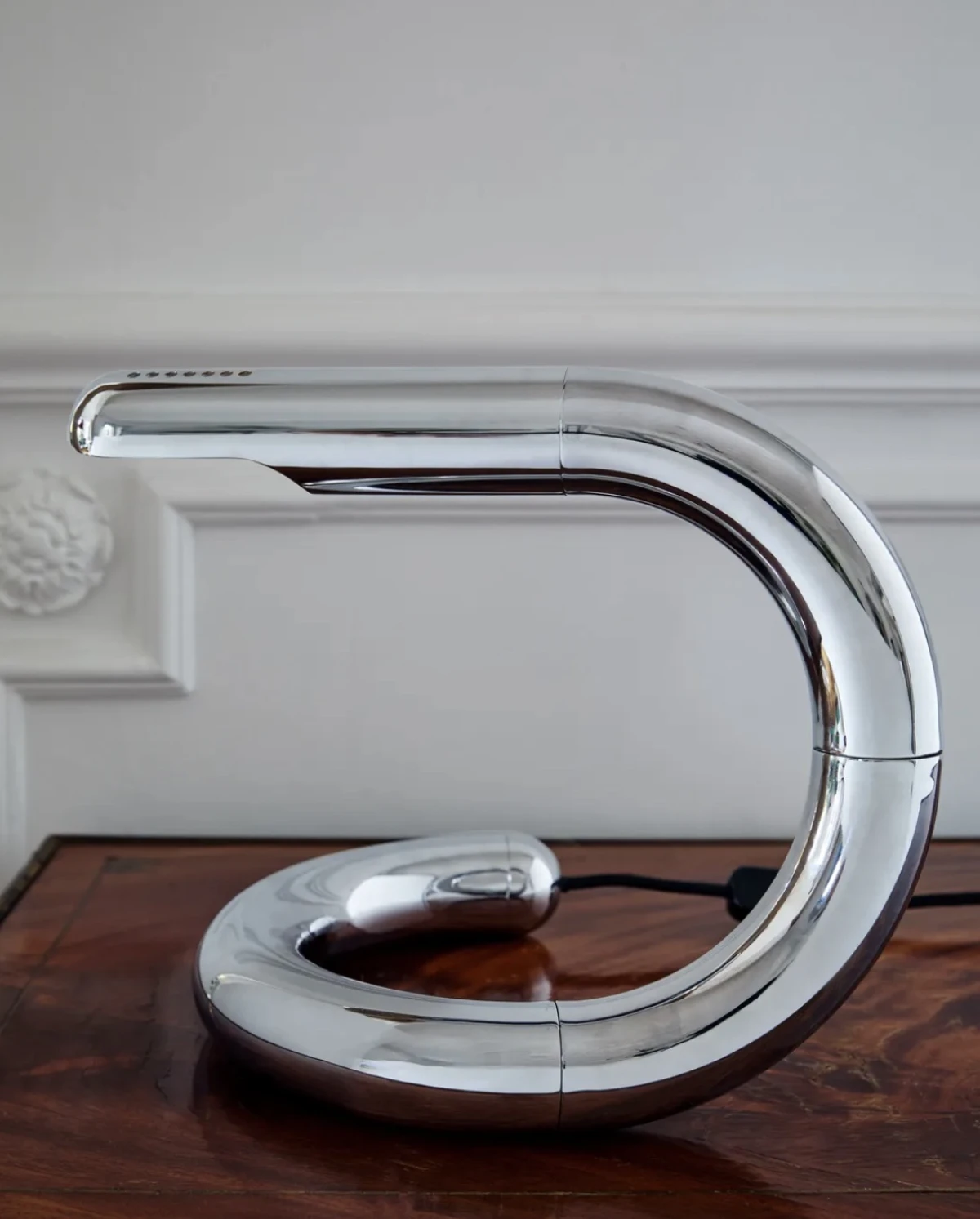 Ime je dobila po talijanskoj riječi asp, što znači zmija, i već na prvi pogled jasno je zašto. Njezin zavojiti, organski oblik podsjeća na elegantan pokret zmije u pokretu, dok sjajna kromirana površina reflektira prostor oko sebe i vlastitu svjetlost. Taj efekt ogledala daje joj osjećaj luksuza, ali i razigrane provokativnosti. Jer u Frattinijevom svijetu, glamur i zaigranost idu ruku pod ruku.
