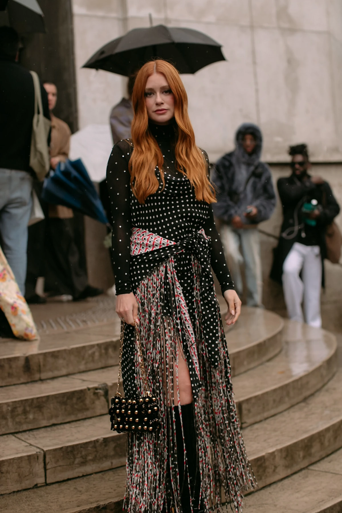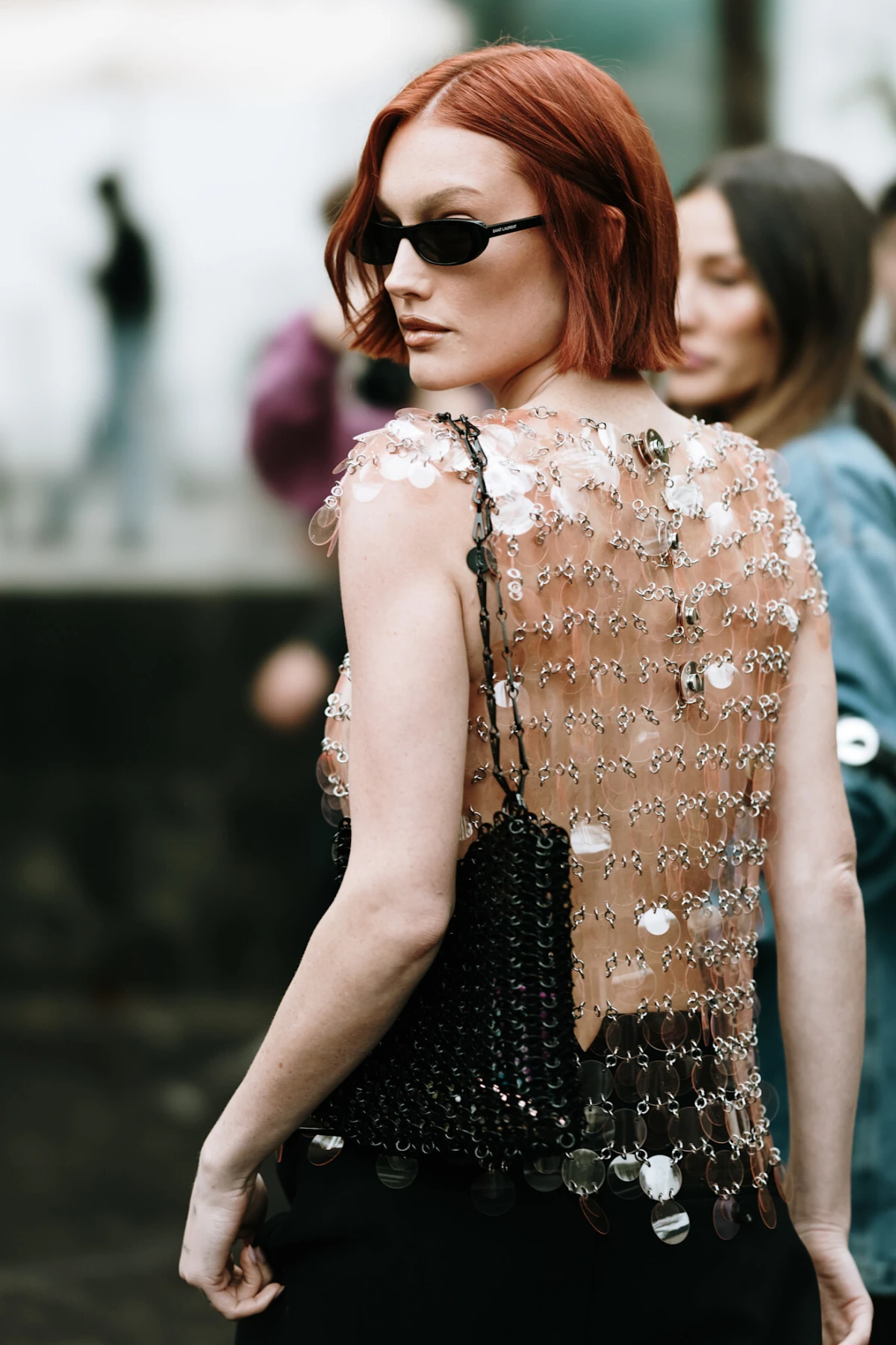 Kada god je Rabanne na modnom kalendaru, očekujemo da ulice ožive šljokičaste haljine i suknje koje su brojni ove sezone ukombinirali uz nešto mekše komade poput pulovera i balonera. Bilo je tu i upečatljivih blještavih torbica i crnih platformi koje su poznatim sobama pomogle da se izdvoje iz mase.