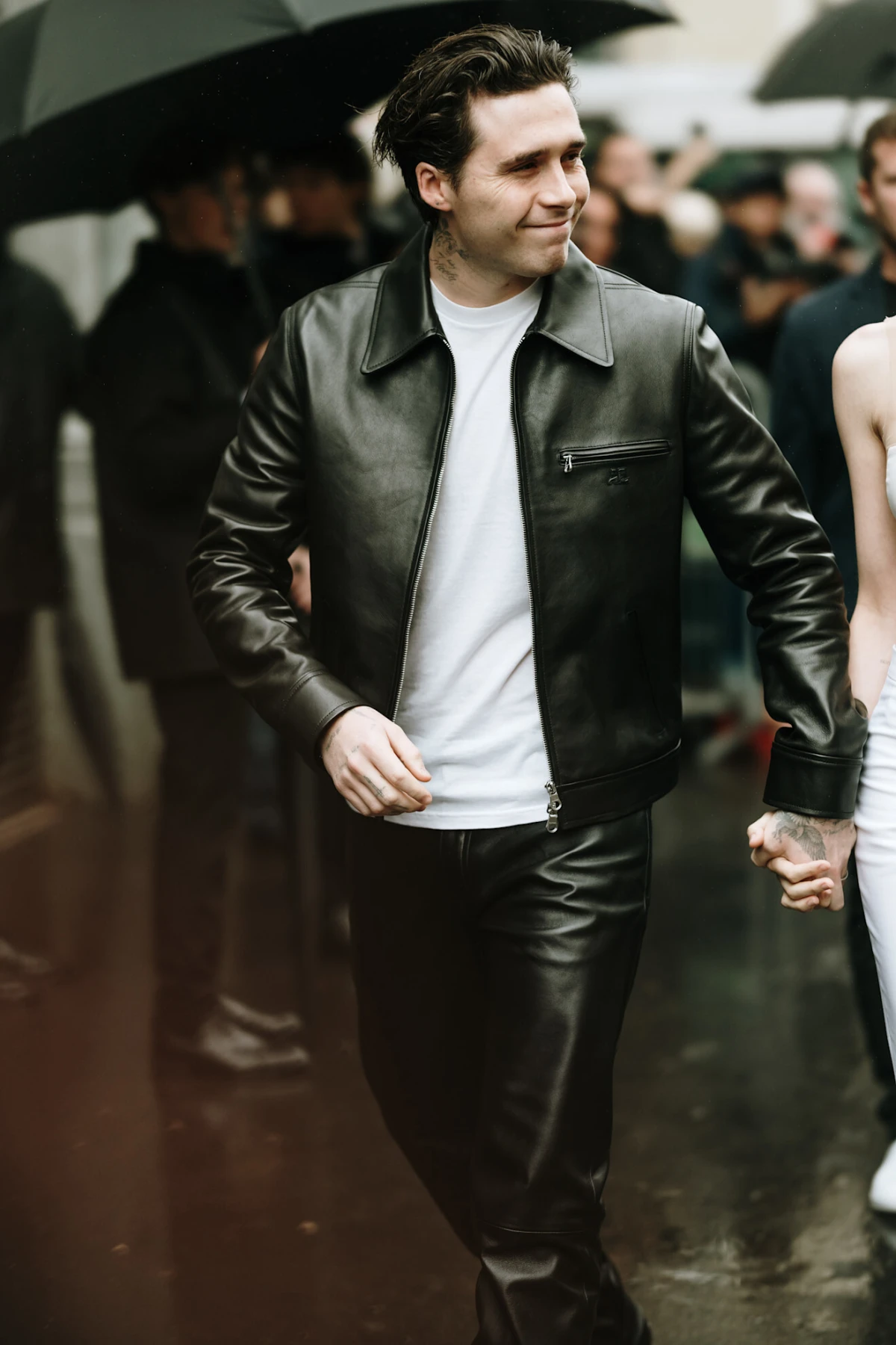 Koža također ima glavnu riječ ove sezone. Kožne jakne i hlače u crnoj i smeđoj boji posebno se ističu, ali i kožne haljine koje smo uočili u prvom redu Courreges revije. Brooklyn Beckham je od svih muškaraca definitivno najbolje izgledao, a nosio je crne kožne hlače i kožnu jaknu bomber siluete.
