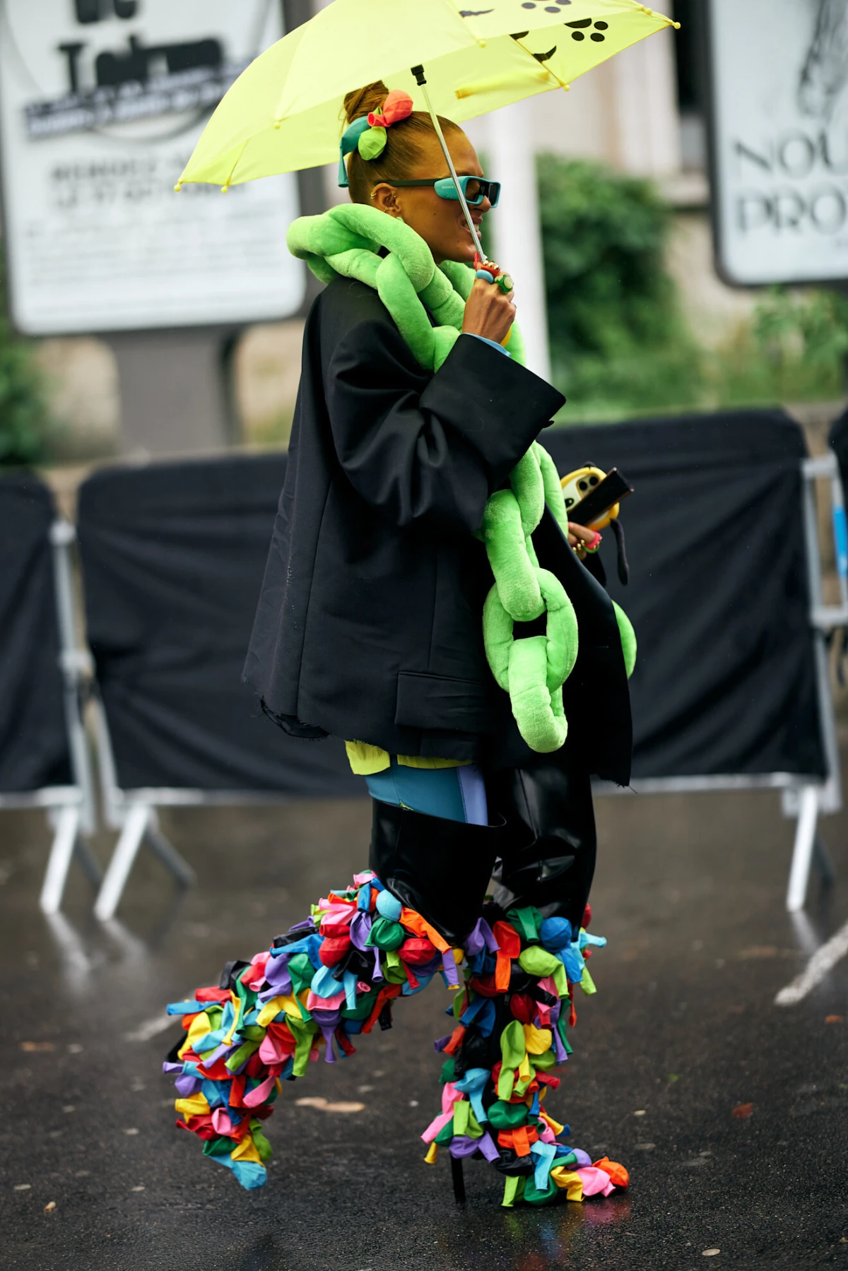 Kiša je očekivana pojava u Parizu, posebno u rujnu, pa su brojne street style zvijezde pripremili svoje električne kombinacije s kojima su uspješno otjerali tmurne oblake. Mnogima je kišobran poslužio kao savršeni modni dodatak, kao i čizme koje su jučer imale glavnu riječ.