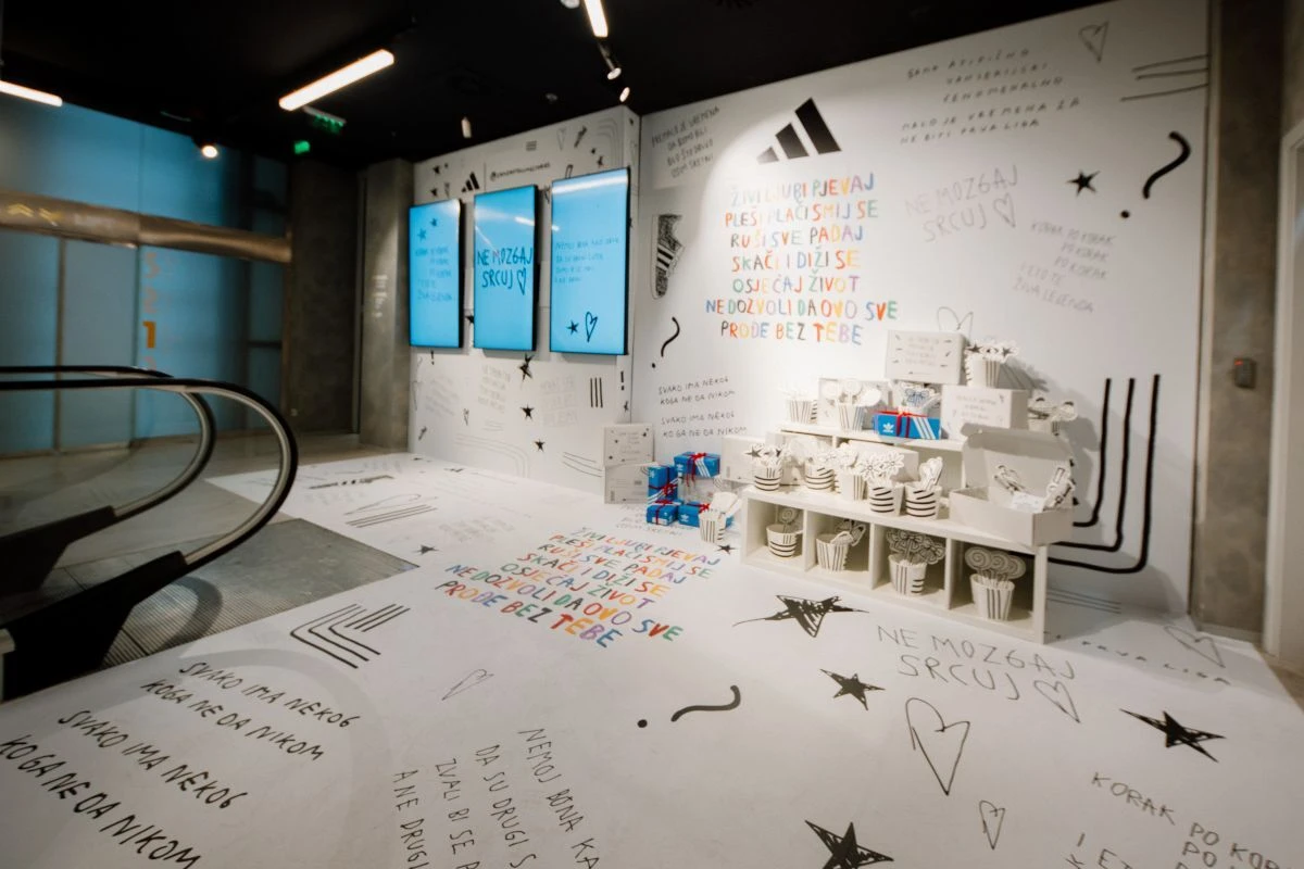 Osim Print Shopa, adidas store u Ilici ovih blagdana ima i novo prigodno ruho. Naime, interijer trgovine u centru Zagreba ovog prosinca je ukrašen inspirativnim motivacijskim porukama popularnog Instagram autora Sandra Slavnića, poznatijeg pod brendom @sandrotellingstories.