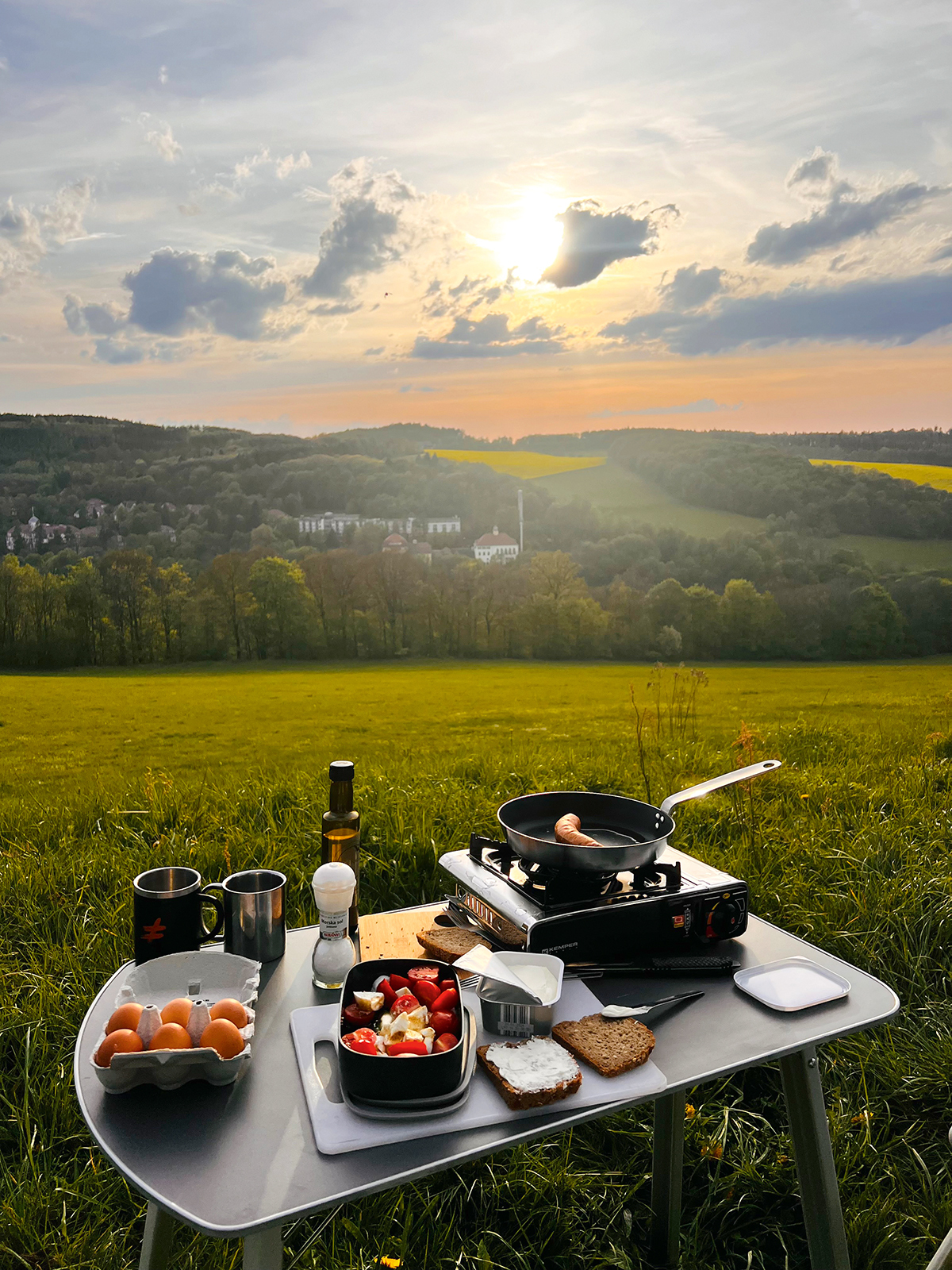 Sjedim pokraj prijenosne ploče za kuhanje gledajući kako sunce zalazi iza polja uljane repice, negdje na granici između Češke i Njemačke. Na tanjuru ispred mene rajčice, jaja i kobasice, sve domaće, proizvodi lokalnih seljaka. Jedem polako, uživajući u svakom zalogaju. U trenutku kada sam pronašla ovo mjesto na aplikaciji za kampiranje, znala sam da će biti savršeno. U blizini se zaustavi automobil mađarskih registracija iz kojeg izlijeću četiri border collieja trčeći prema livadi. Zaklela bih se da se cerekaju od uha do uha. Tako barem izgledaju dok se zadovoljno valjaju po travi. Taj me prizor podsjeti na scenu iz „Norveške šume“ Harukija Murakamija, opis kako Midori zamišlja savršen dan. U njezinoj se mašti ona s krznenim medvjedićem valja po proljetnoj livadi.