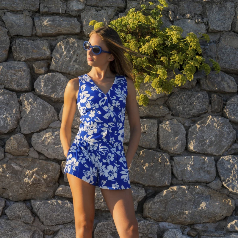 Duga pufnasta suknja + jednodjelni kupaći kostim + šešir + sandale