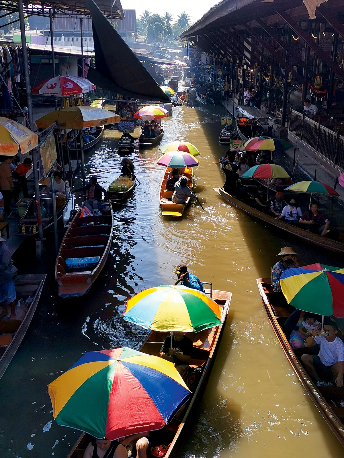 Najpoznatija plutajuća tržnica u Tajlandu je Damnoen Saduak u blizini Bangkoka. Iako su plutajuće tržnice bile brojnije u prošlim vremenima, i dalje su popularna atrakcija, naročito za turiste. Na tržnicama vlada živahna atmosfera: prodavači u šarenim čamcima nude sve – od svježeg voća i povrća, lokalnih specijaliteta, začina pa do suvenira, umjetničkih djela i rukotvorina. U čamcima možete vidjeti ljude kako spremaju i prodaju razne tradicionalne tajlandske grickalice, kao što su pržene palačinke od banane, sladoled od kokosa ili začinjeni som tam (tajlandska salata od papaje). Dok se krećete kroz kanale, možete uživati u pogledu na tradicionalne kuće na drvenim stupovima i uživati u zvucima veslanja i trgovine.