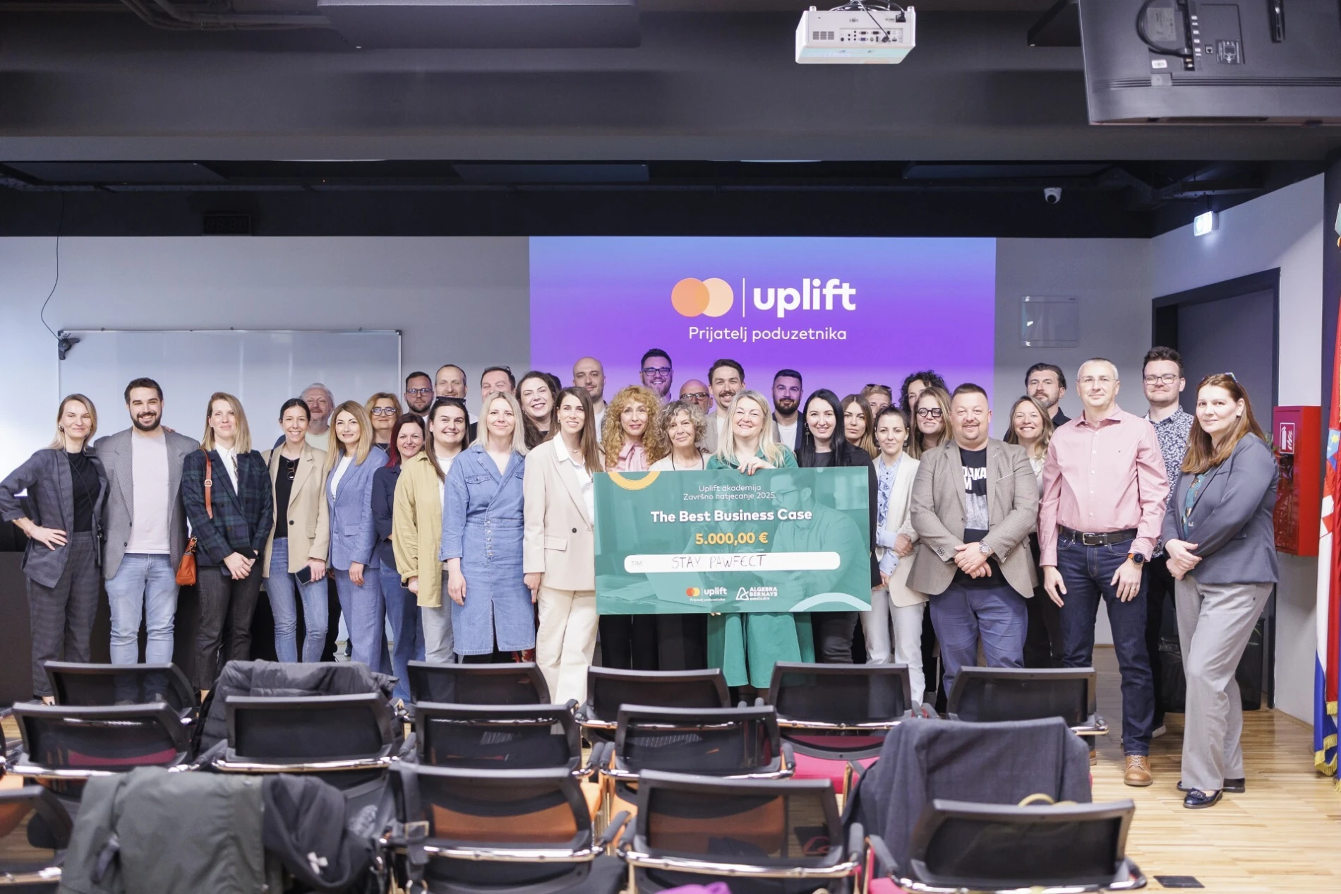 Petomjesečna edukacija u sklopu projekta Uplift, koju je provodilo Sveučilište Algebra Bernays, obuhvatila je 32 polaznika koji su, uz teorijska znanja, radili i na praktičnim zadacima te razvijali vlastite projekte kroz mentorski program. Mentorice Dijana Novak Krešić, Renata Ćurković, Marijana Šarolić Robić i Petra Stojanov su vodile timove, a najboljeg među njima birao je žiri koji su činili: Romana Gjergja Juraški (bolnica Srebrnjak), Darija Ivandić Vidović (Triglav osiguranje), Josip Kustić (TIS grupa), Zlatko Ledinek (Spark Promotions), Tanja Ninić (project.11), Mario Aunedi Medek (Val grupa), Tomislav Dominiković (Algebra Grupa), Ema Huskić (Mastercard).